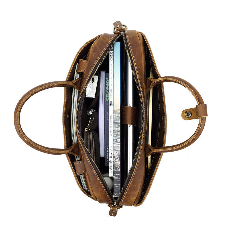 15 Inch Leather Laptop Bag | Vintage Crazy Horse Leather Messenger for Work & Commute