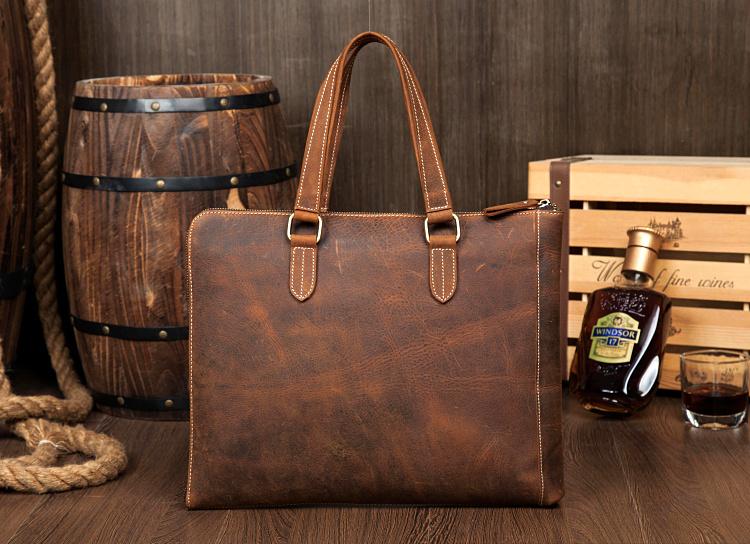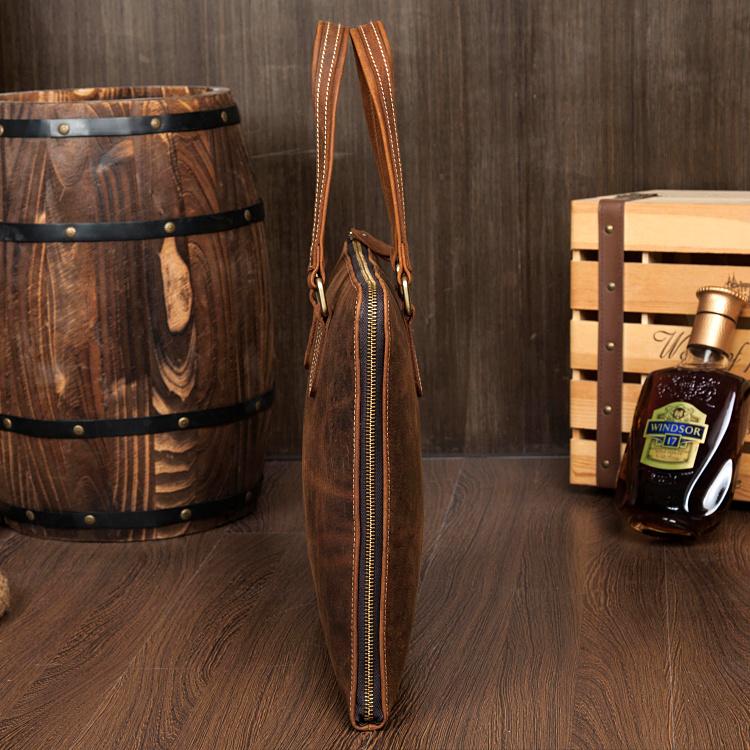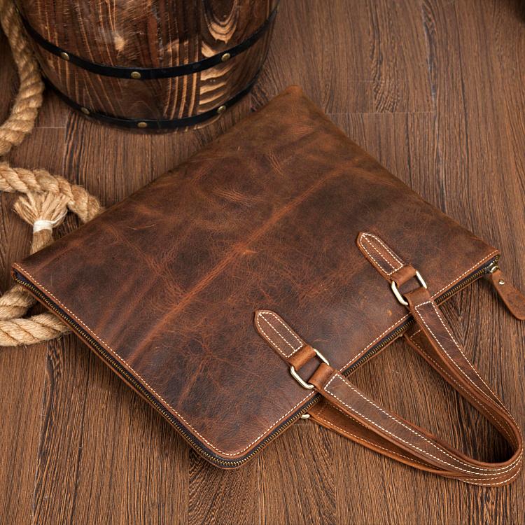 Style: Brown Leather Mens 13 inches Briefcase Laptop Side Bag Business Bags Work Bags for Men