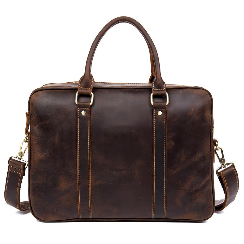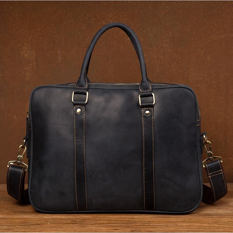 Design: Brown Leather Mens 14 inches Briefcase Laptop Bag Navy Business Bags Work Bag for Men