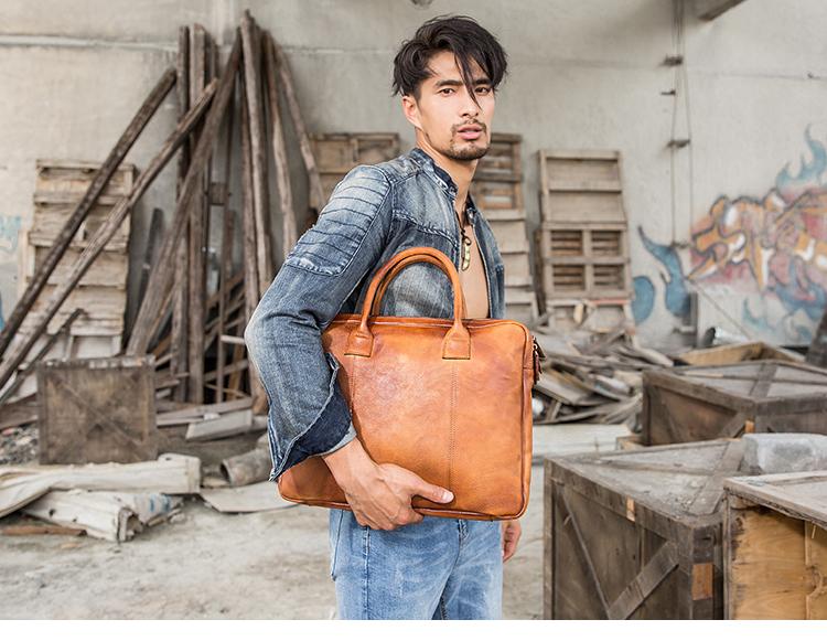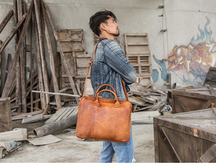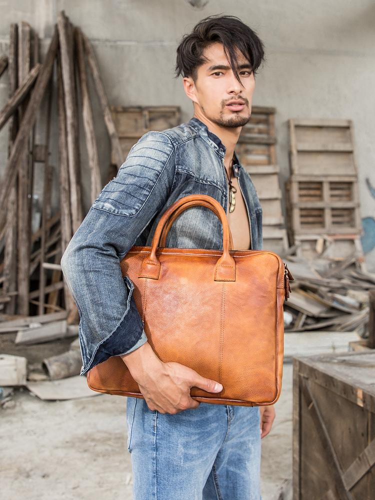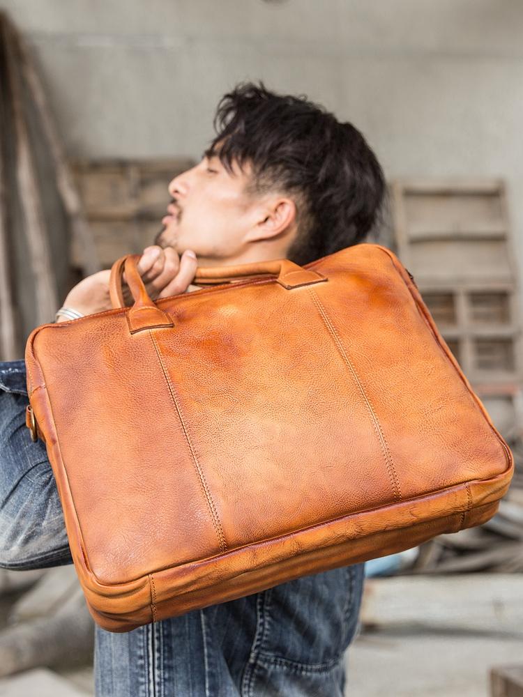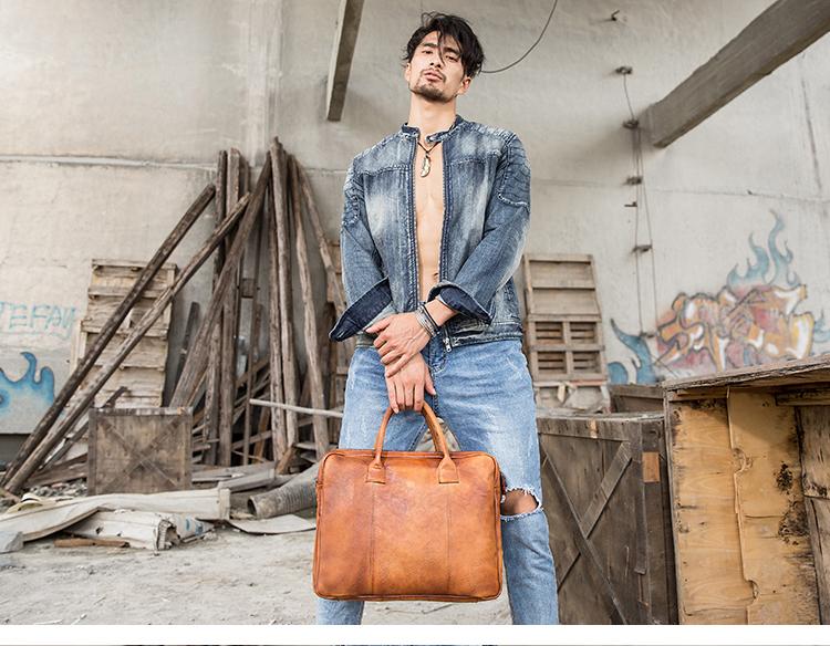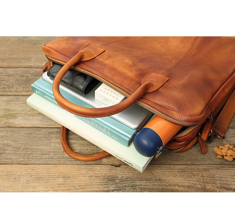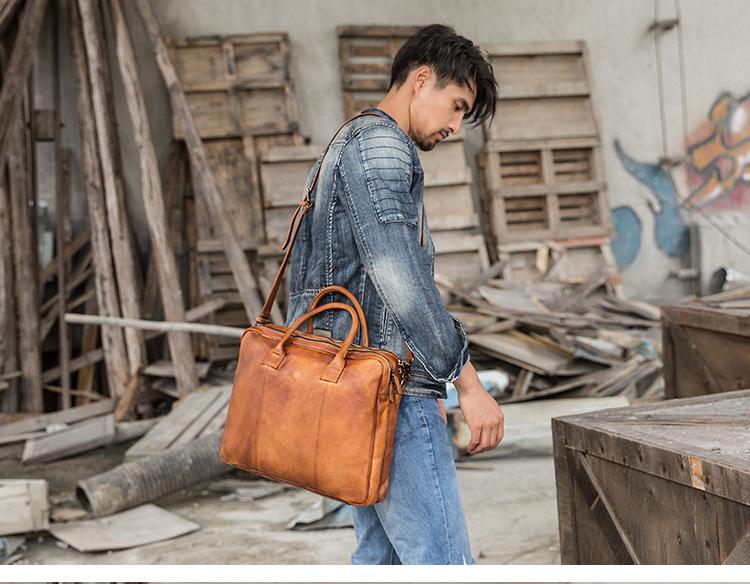 Vintage Brown Leather Mens 14 inches Briefcase Work Side Bag Brown Laptop Briefcase Business Bag for Men