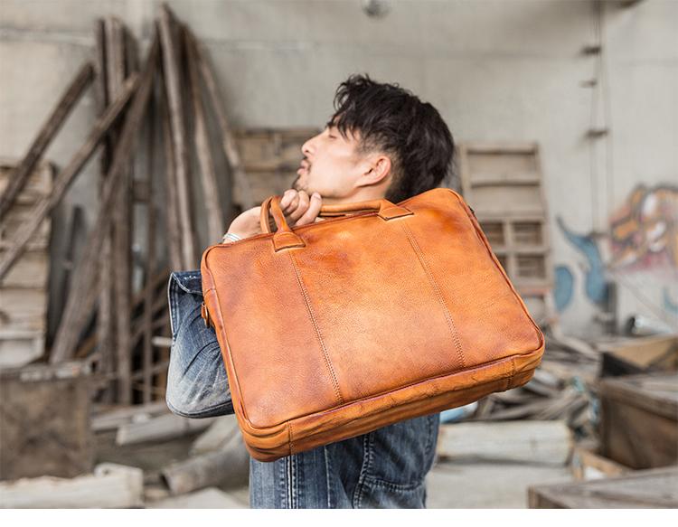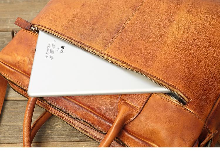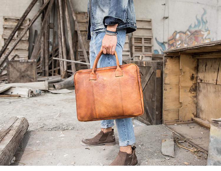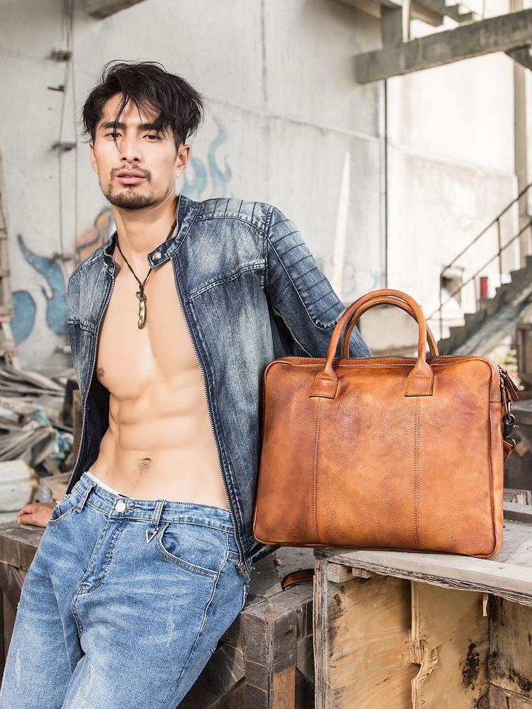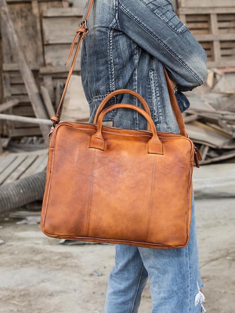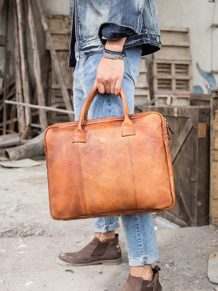 Vintage Brown Leather Mens 14 inches Briefcase Work Side Bag Brown Laptop Briefcase Business Bag for Men