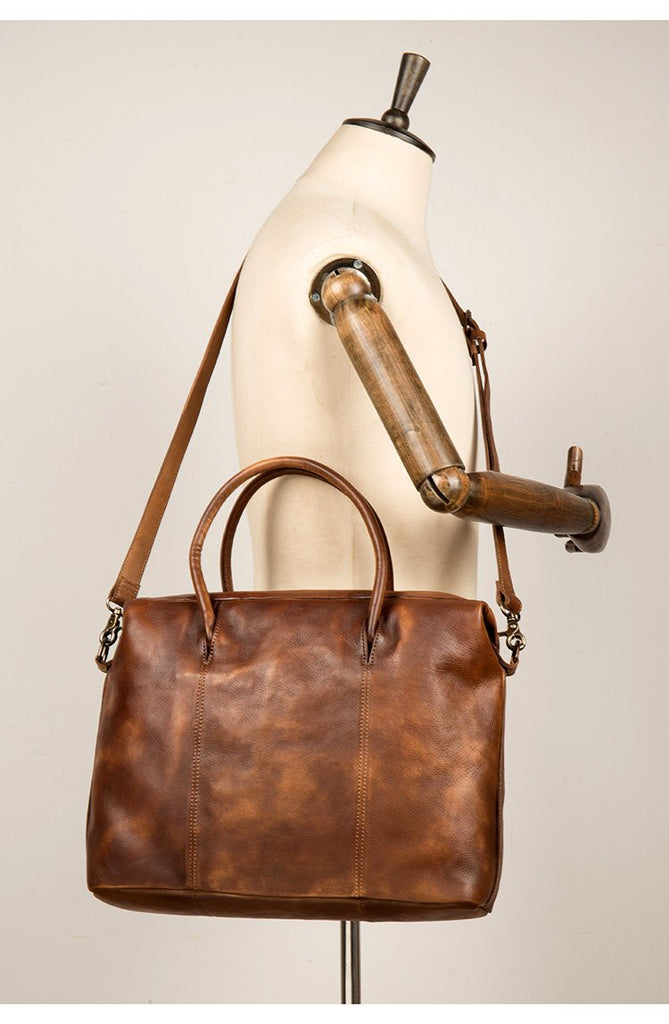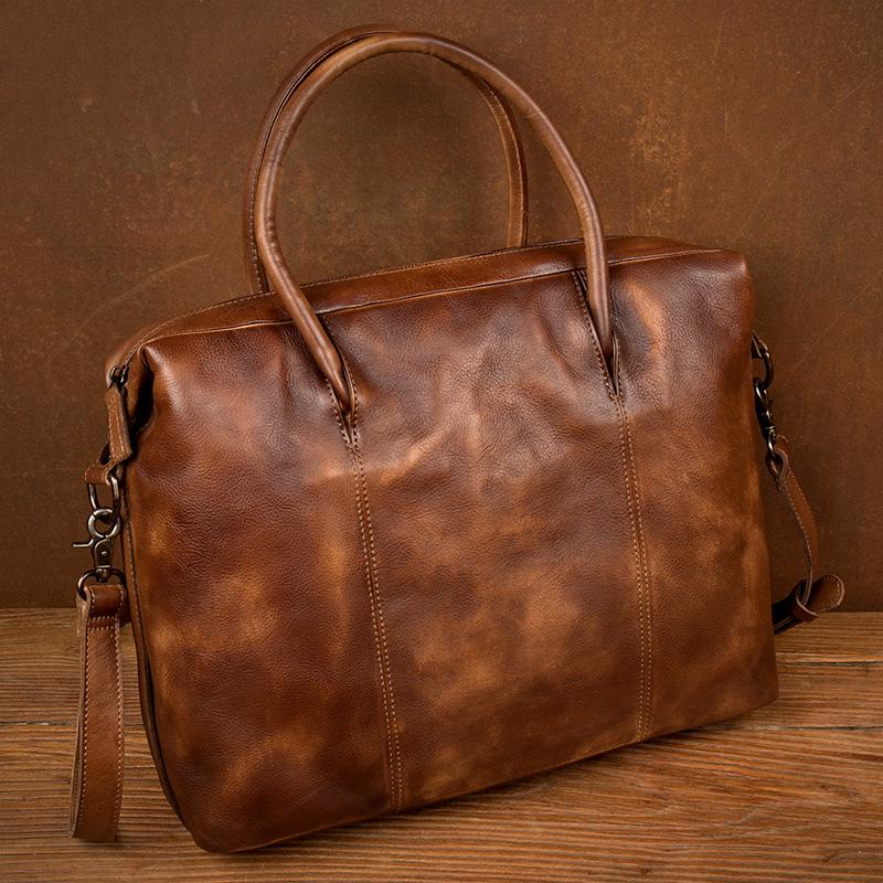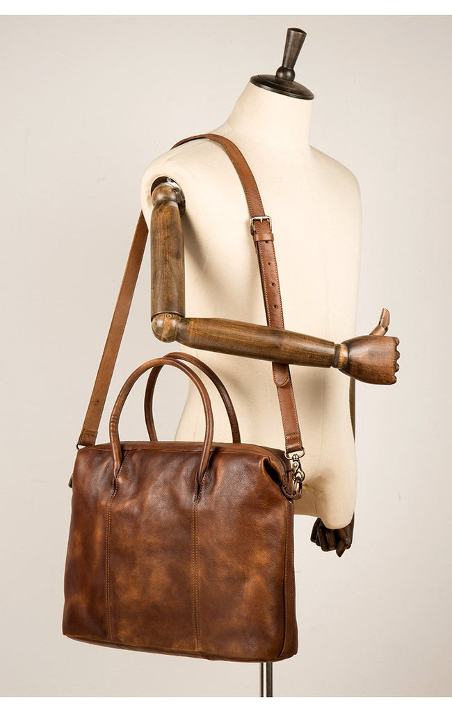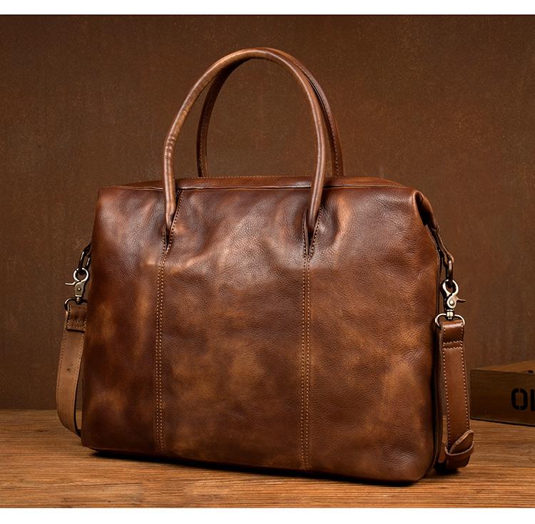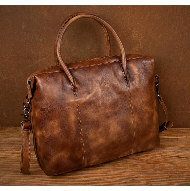 Style: Brown Leather Mens 15 inches Briefcase Laptop Bag Business Bags Work Bag for Men