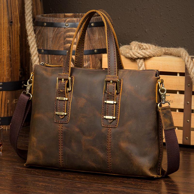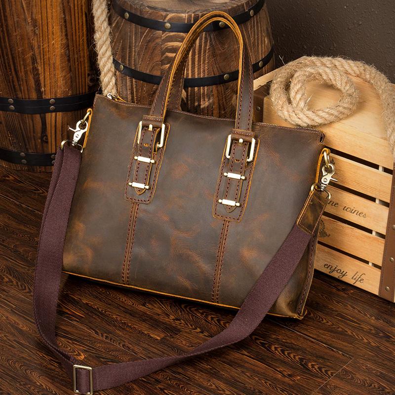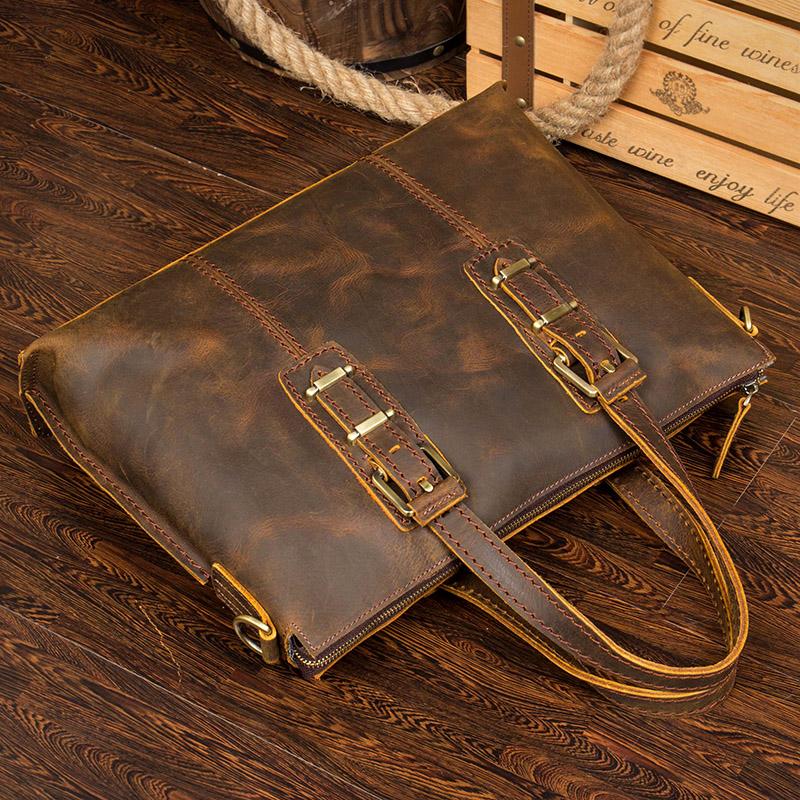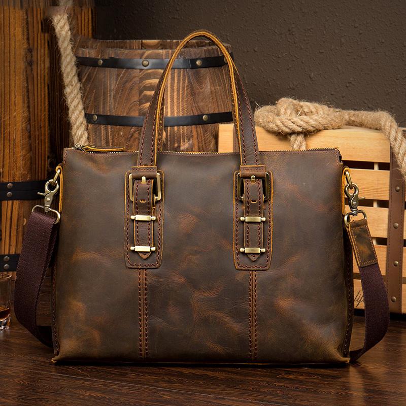 Design: Brown Leather Mens 15 inches Briefcase Laptop Bag Business Bags Work Bags for Men