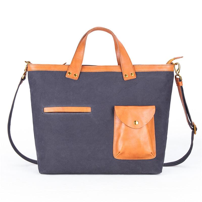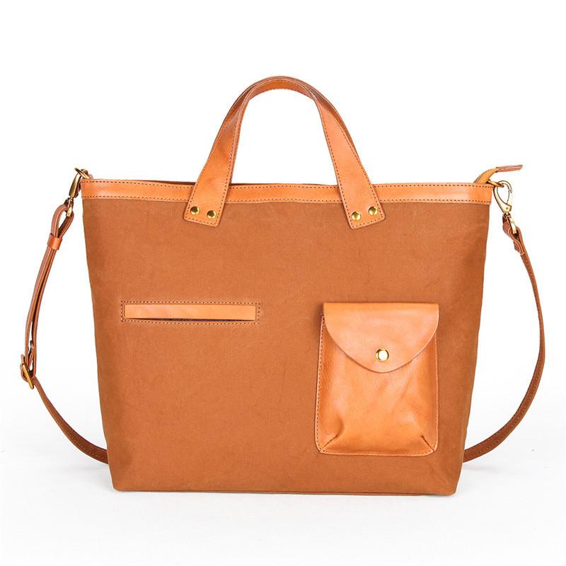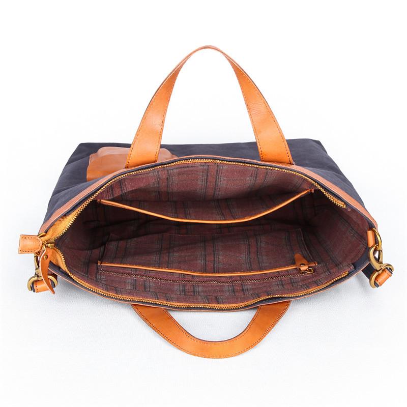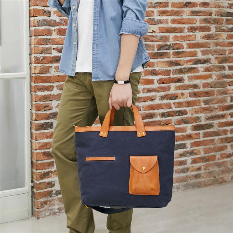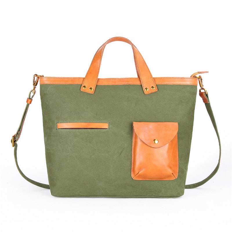 Design: Canvas Leather Mens 14" Caramel Briefcase Bag Shoulder Bag Army Green Diagonal Bag for Men