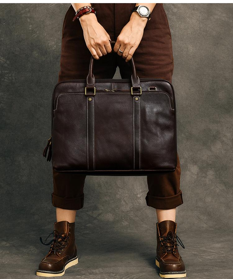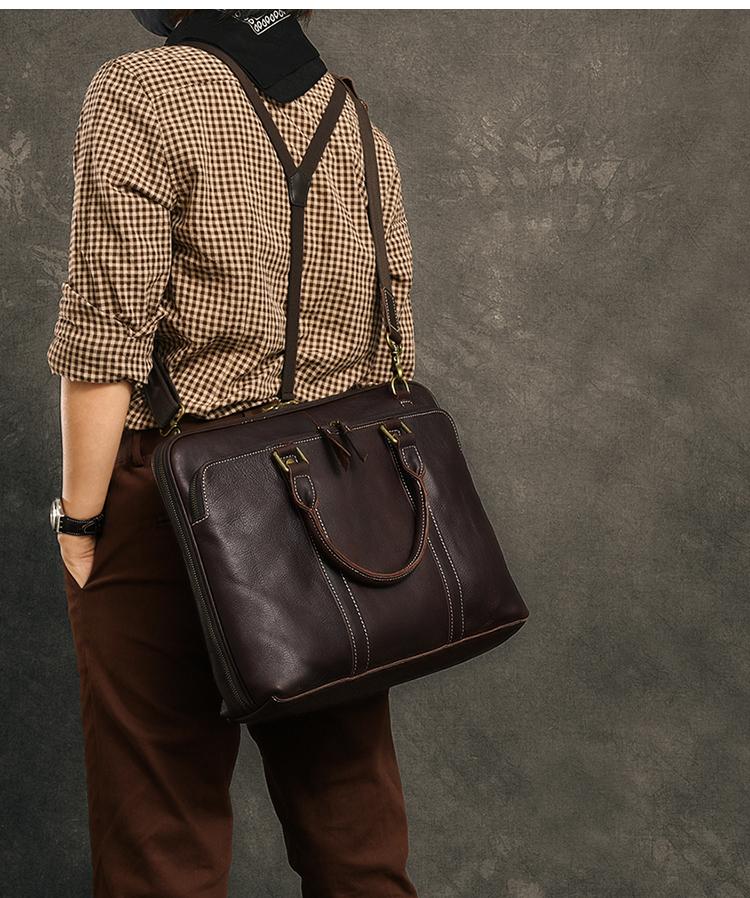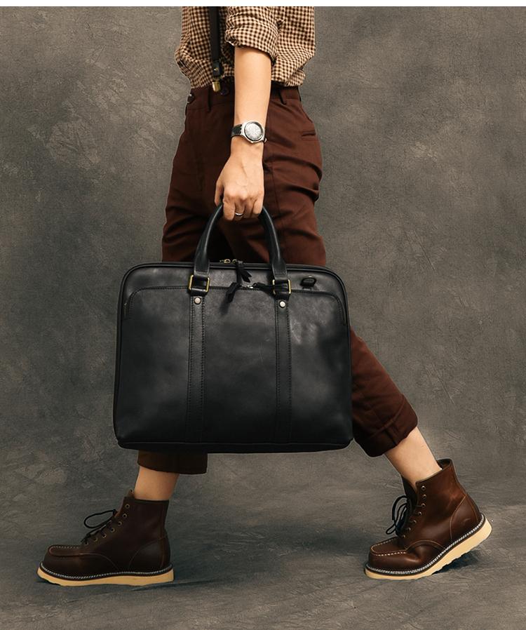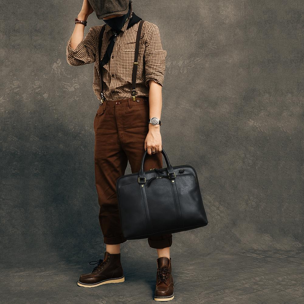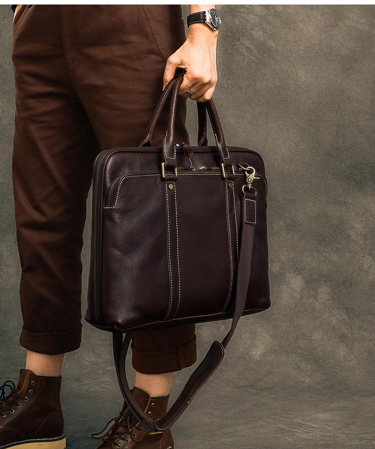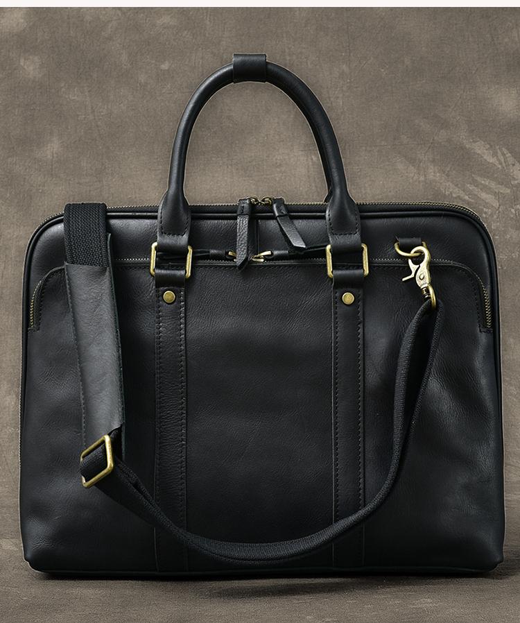 Design: Canvas Leather Mens 15" Black Briefcase Business Brown Messenger Bag Large Handbag For Men