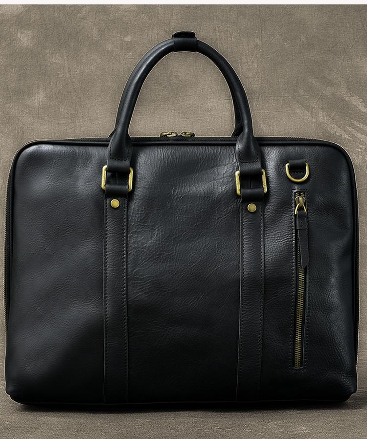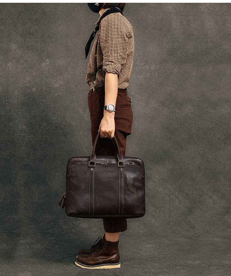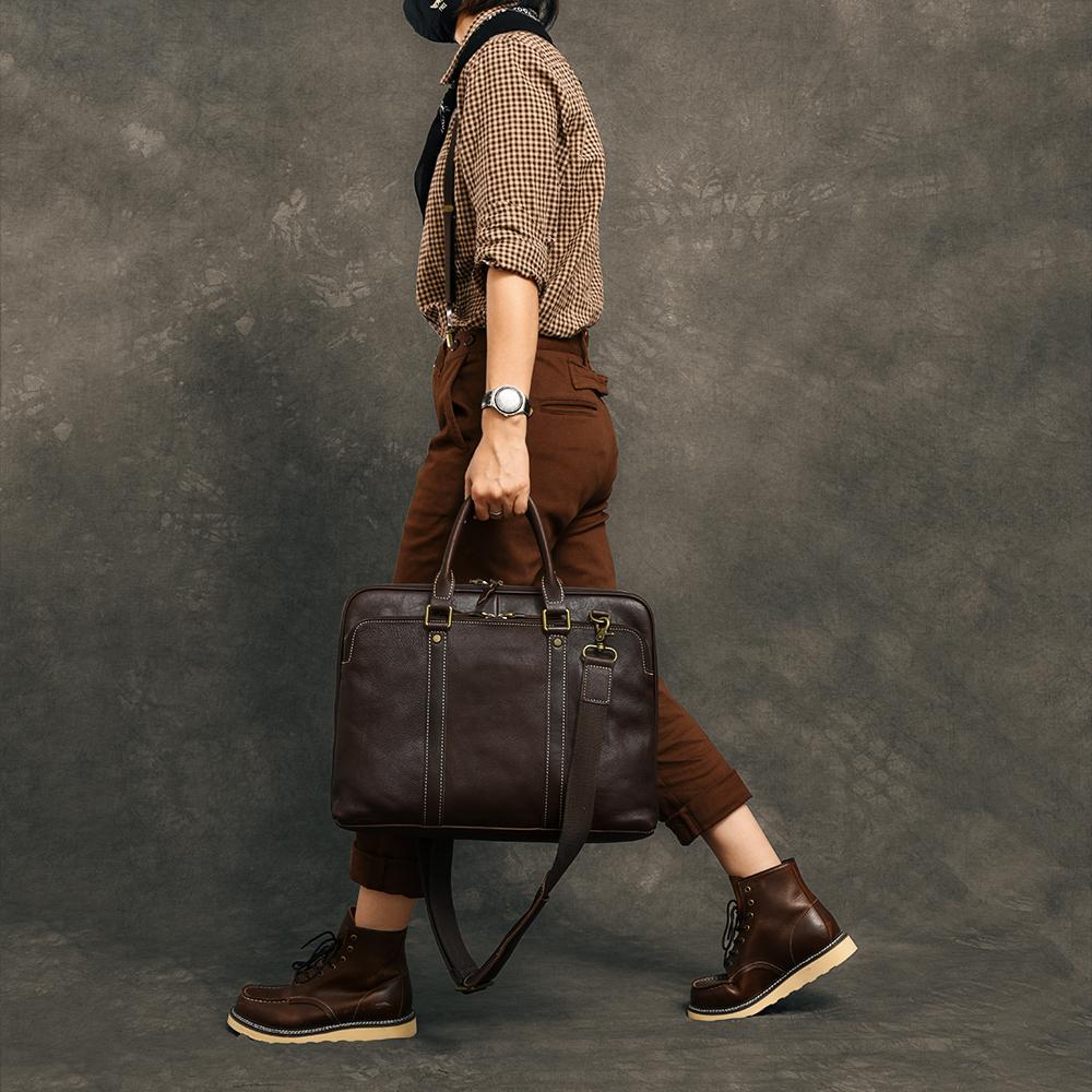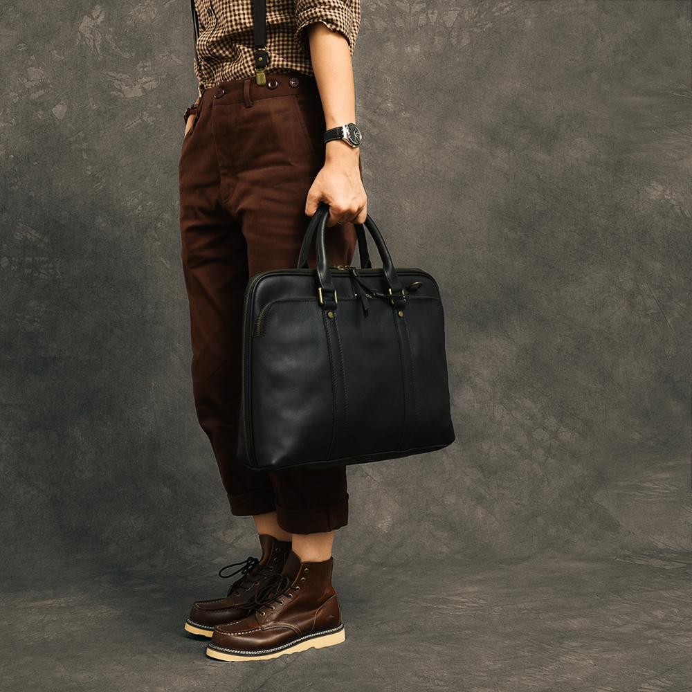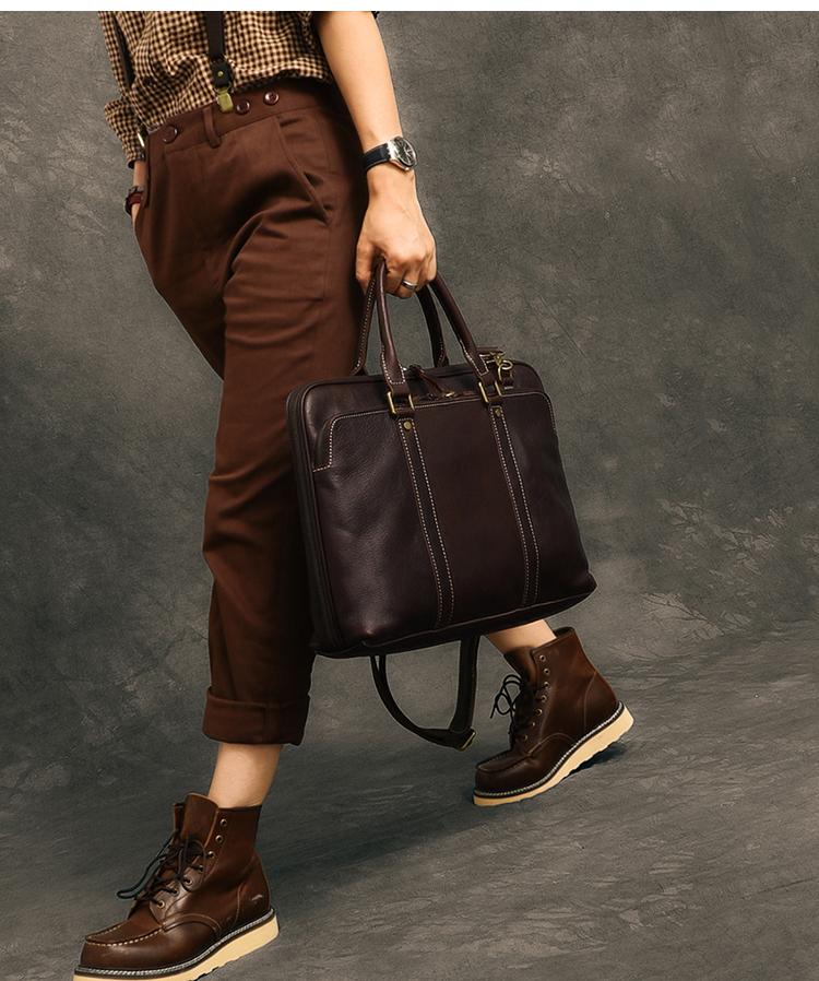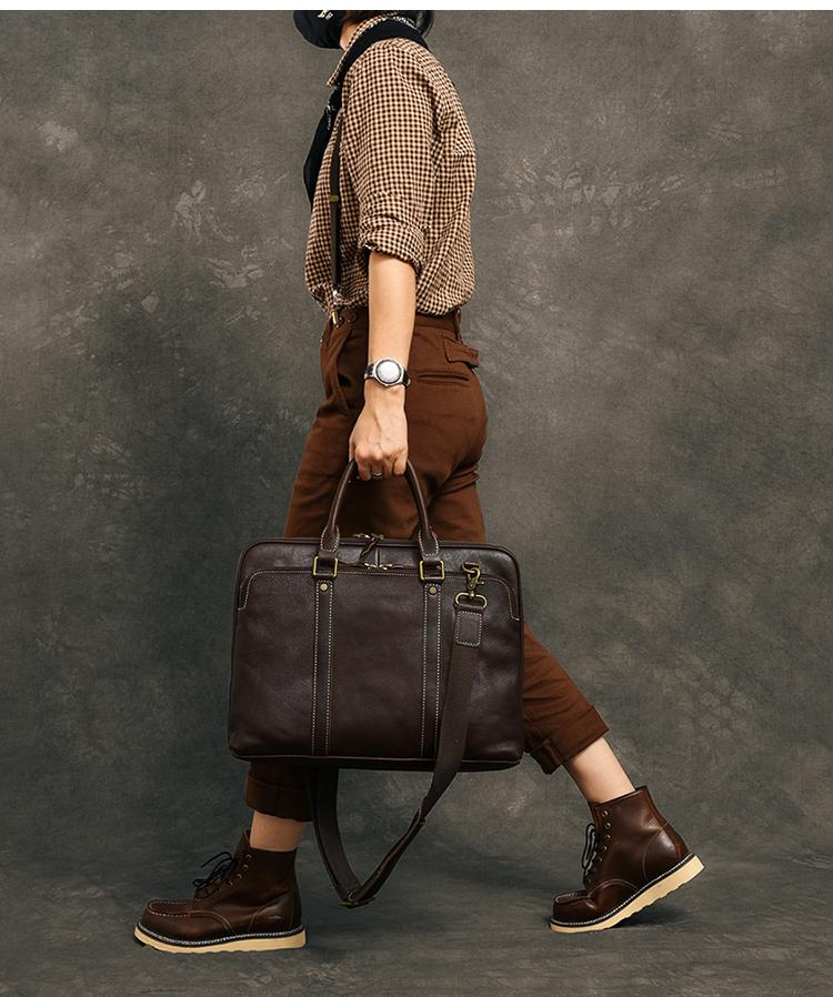 Design: Canvas Leather Mens 15" Black Briefcase Business Brown Messenger Bag Large Handbag For Men