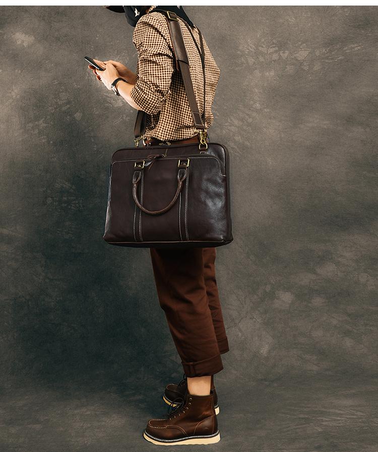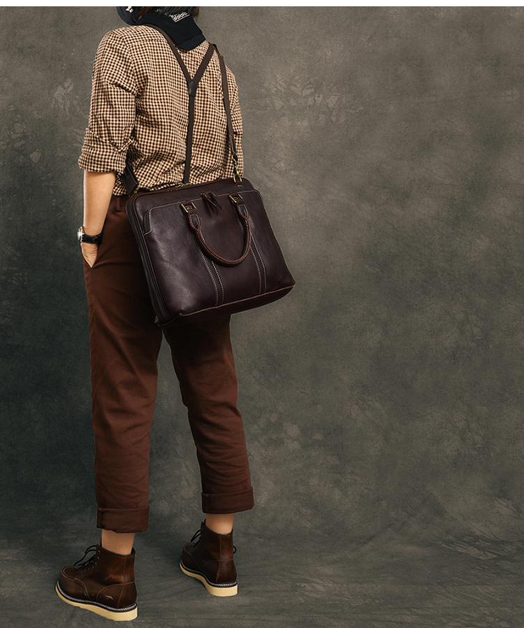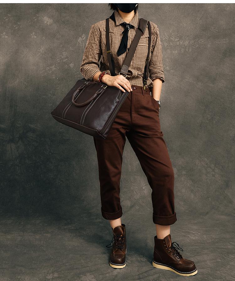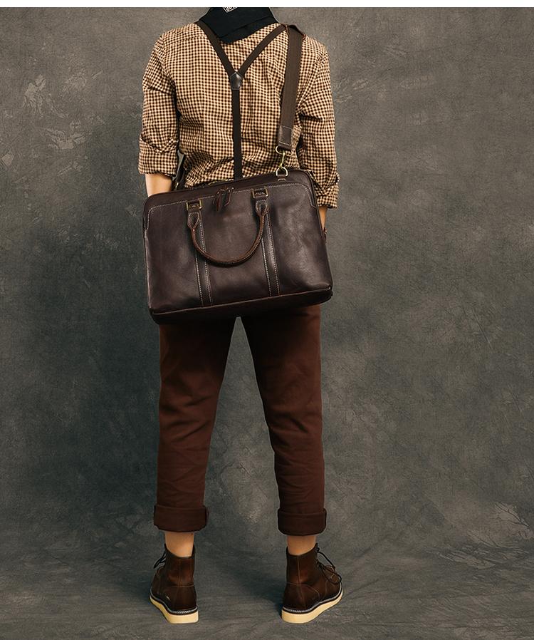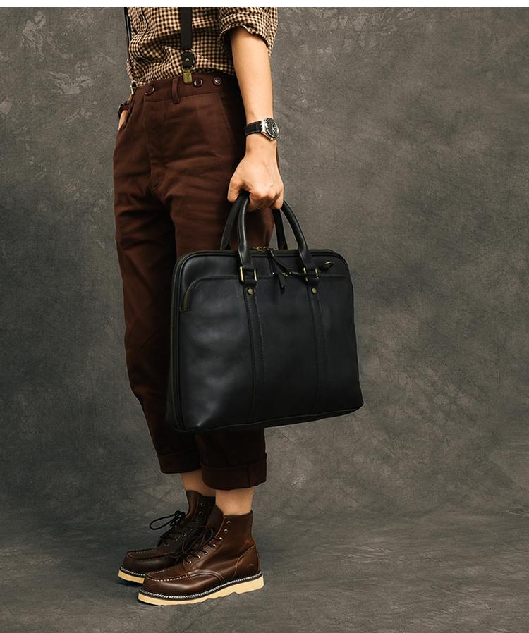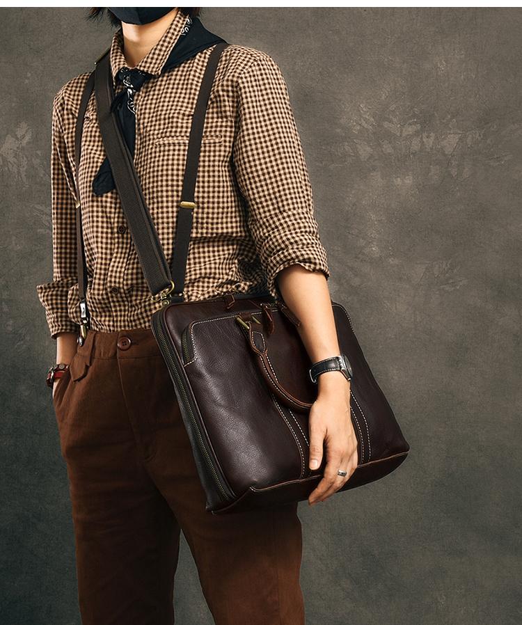 Style: Canvas Leather Mens 15" Black Briefcase Business Brown Messenger Bag Large Handbag For Men