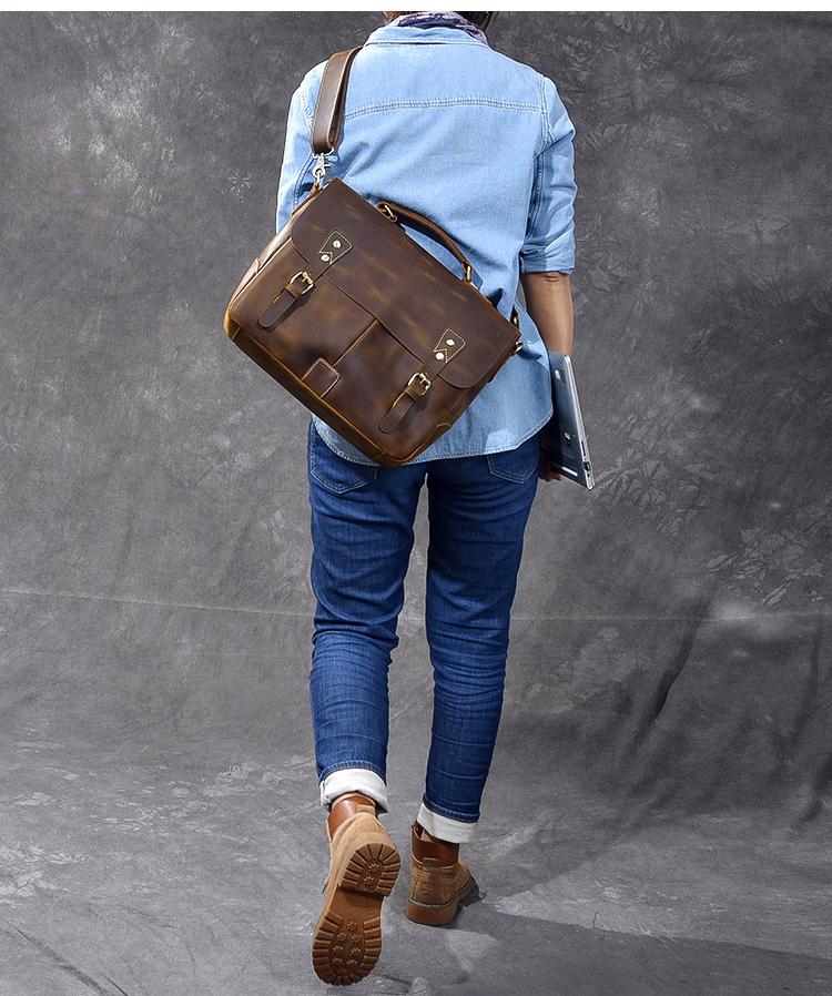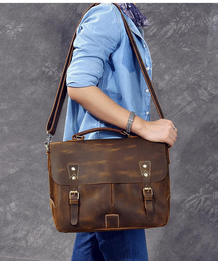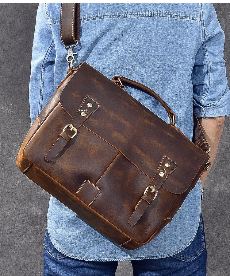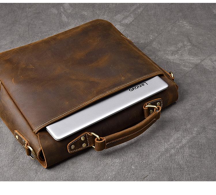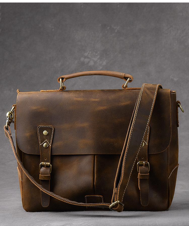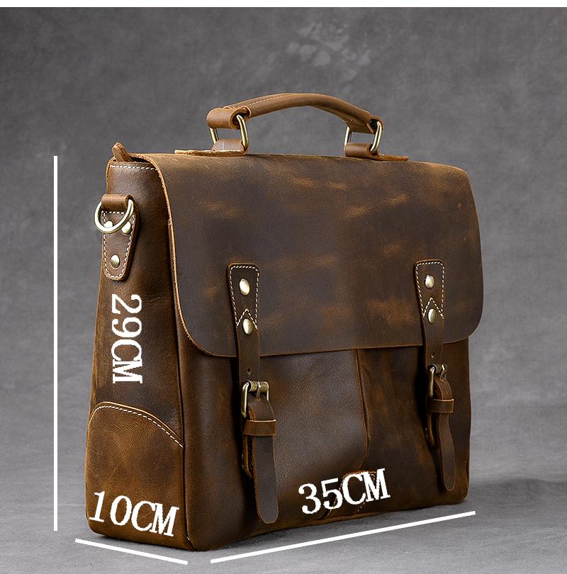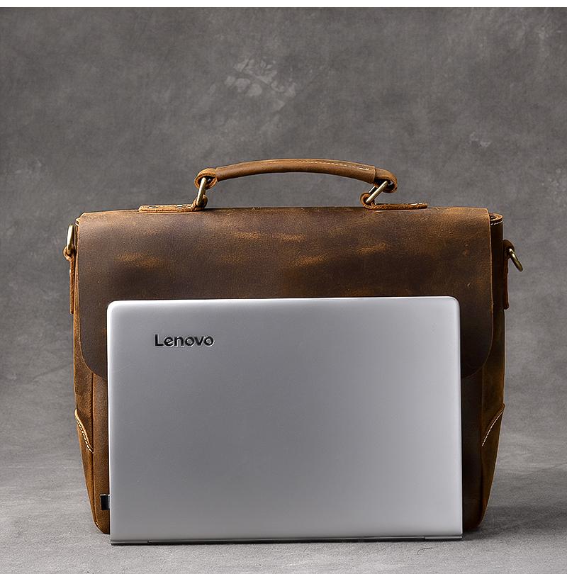 Leather Mens Brown Briefcase 14'' Laptop Bag Messenger Bag Shoulder Bag For Men