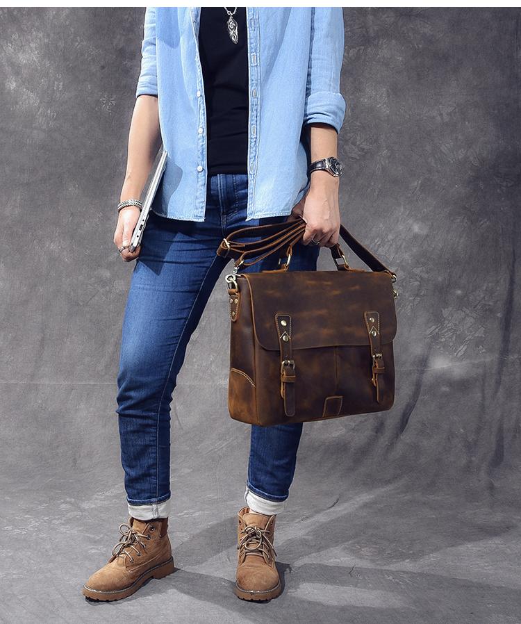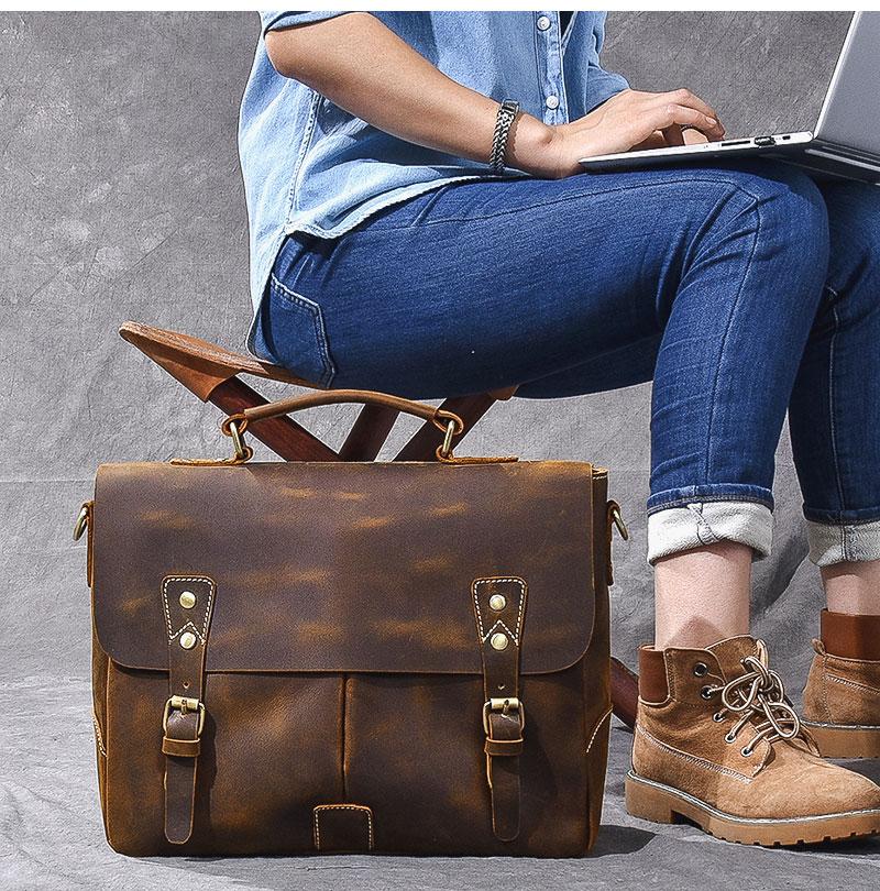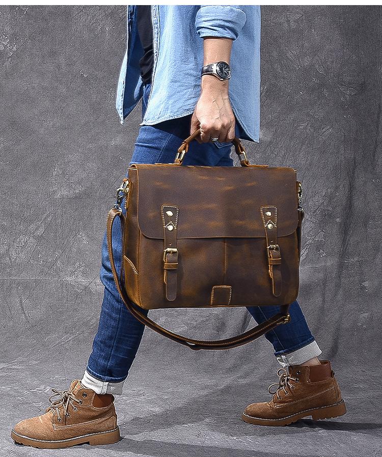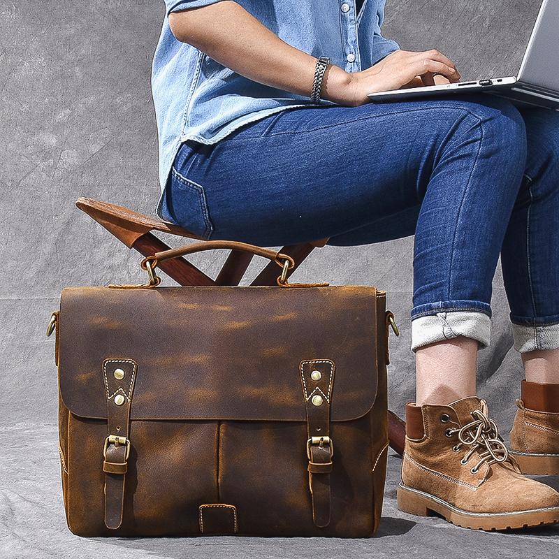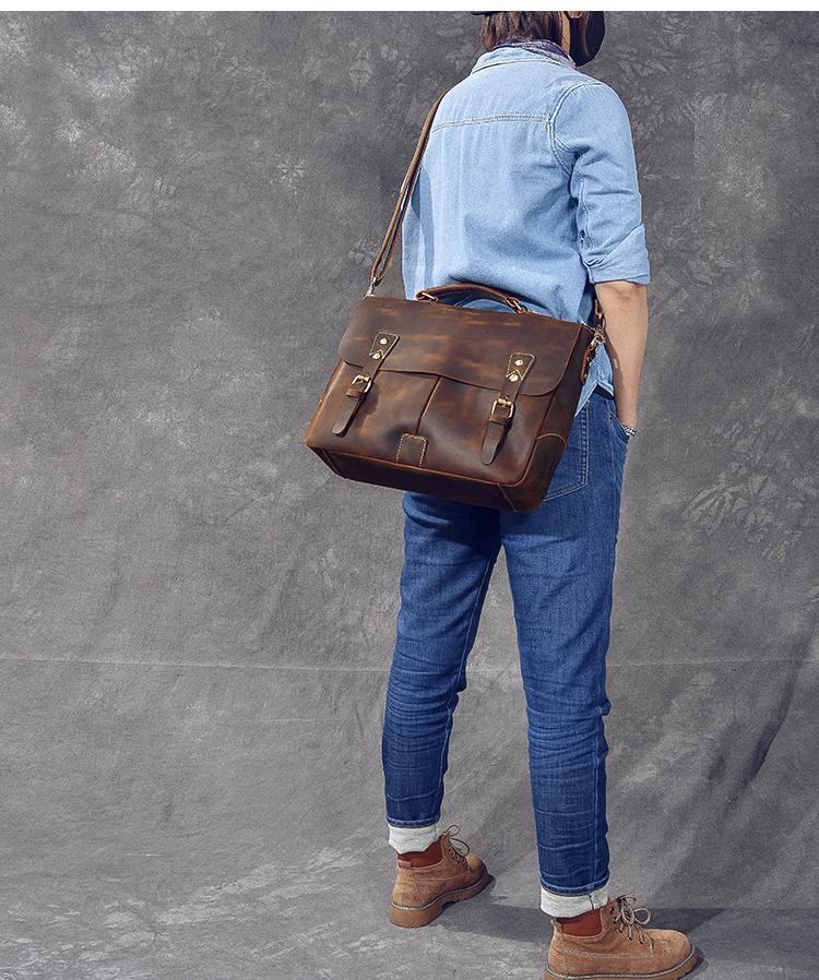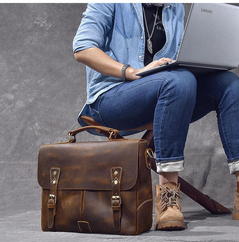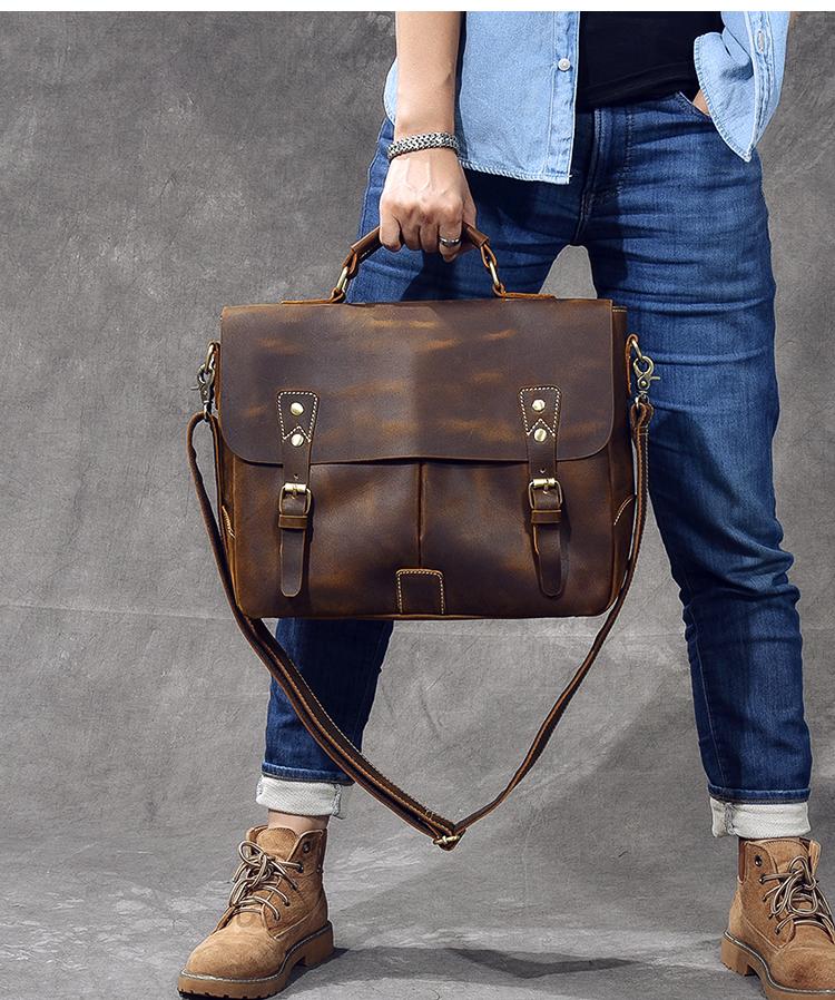 Leather Mens Brown Briefcase 14'' Laptop Bag Messenger Bag Shoulder Bag For Men