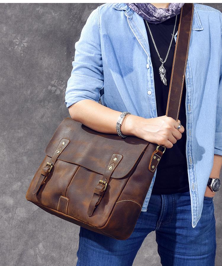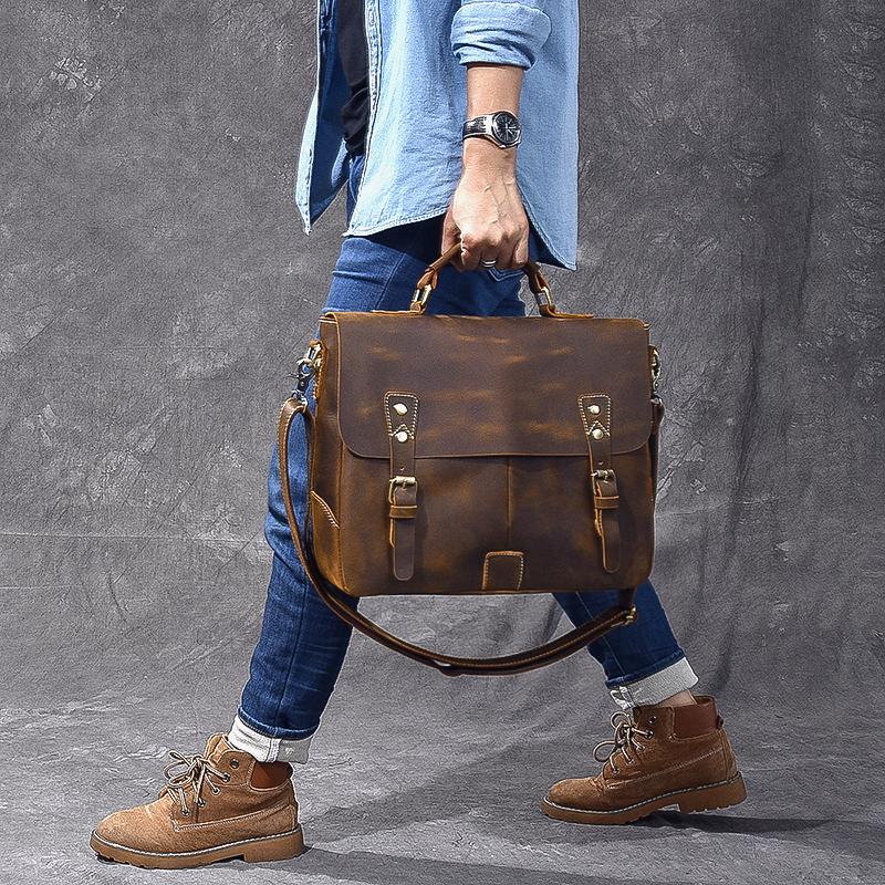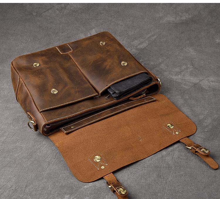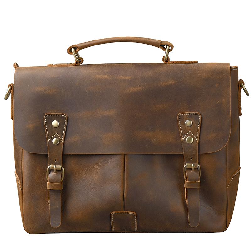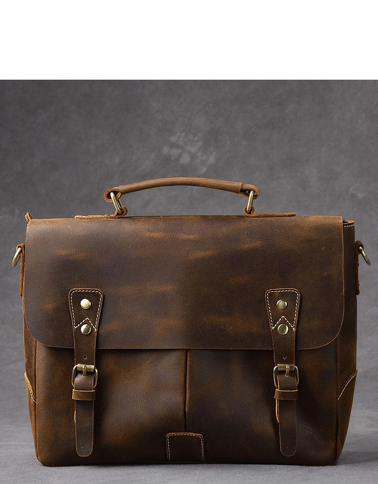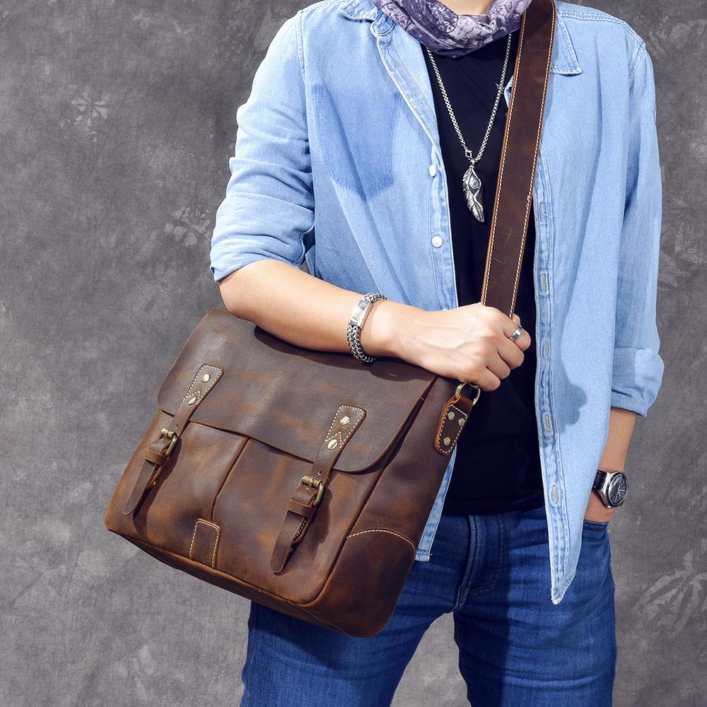 Leather Mens Brown Briefcase 14'' Laptop Bag Messenger Bag Shoulder Bag For Men