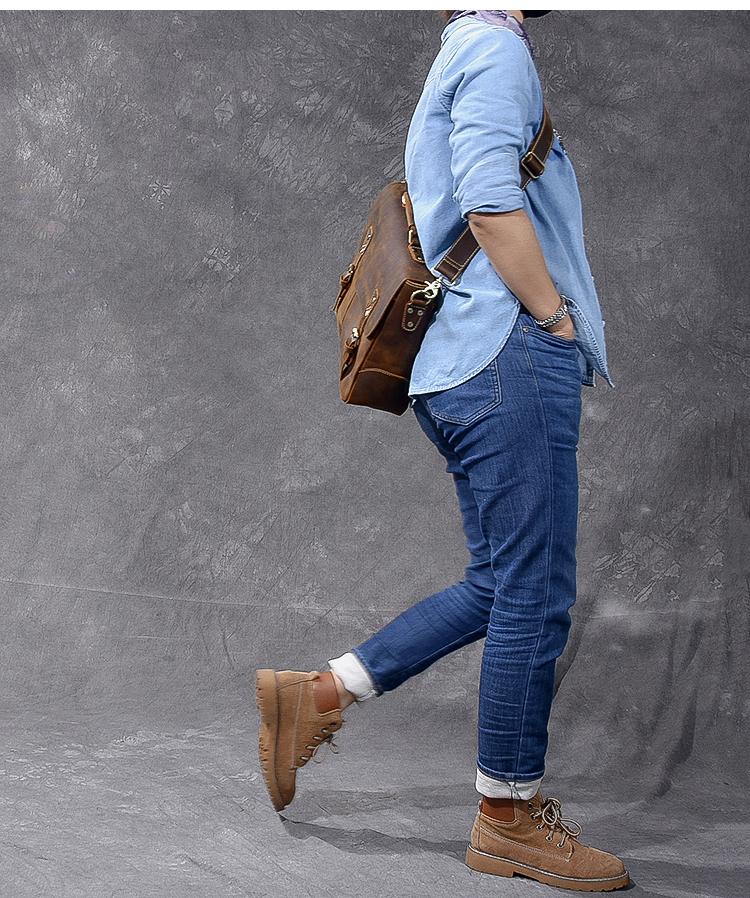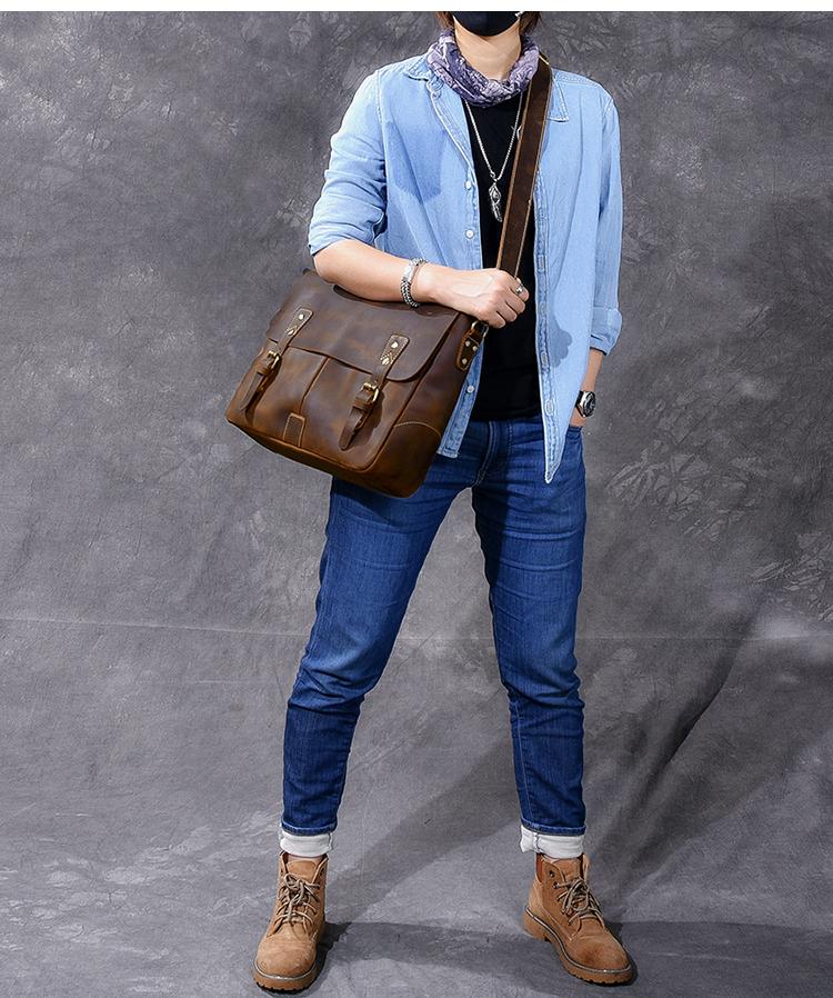 Style: Canvas Leather Mens Brown Briefcase 14'' Crossbody Bag Messenger Bag Shoulder Bag For Men