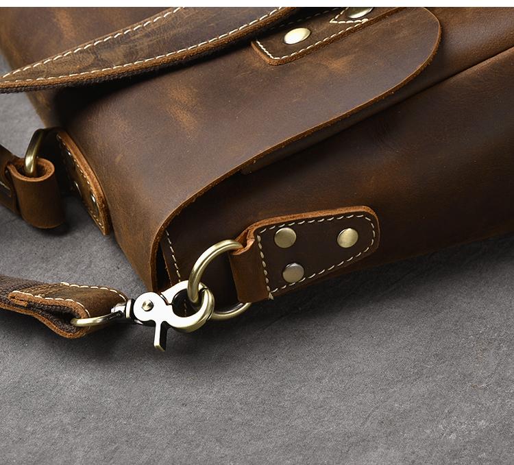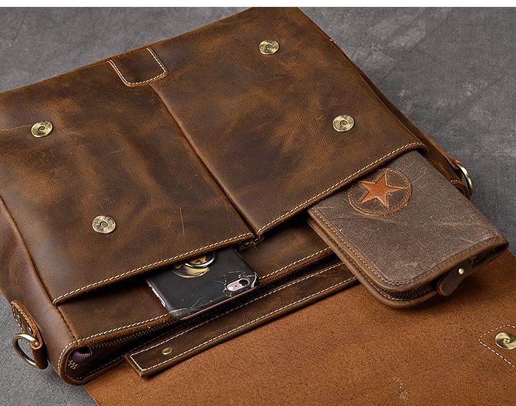 Design: Canvas Leather Mens Brown Briefcase 14'' Crossbody Bag Messenger Bag Shoulder Bag For Men