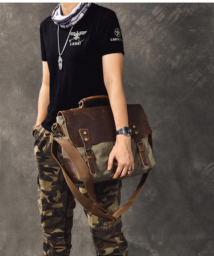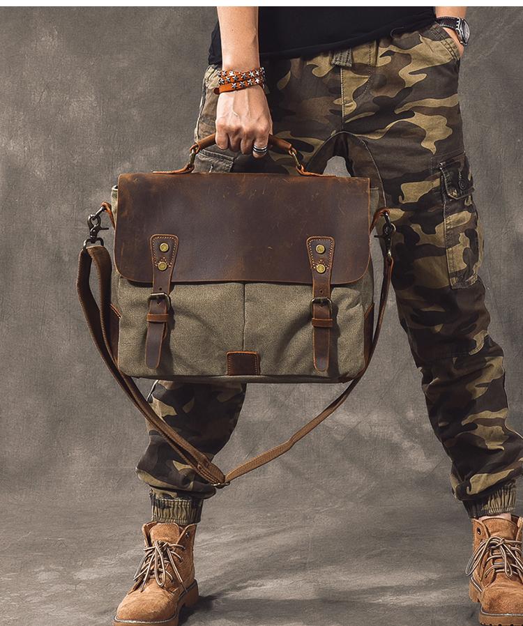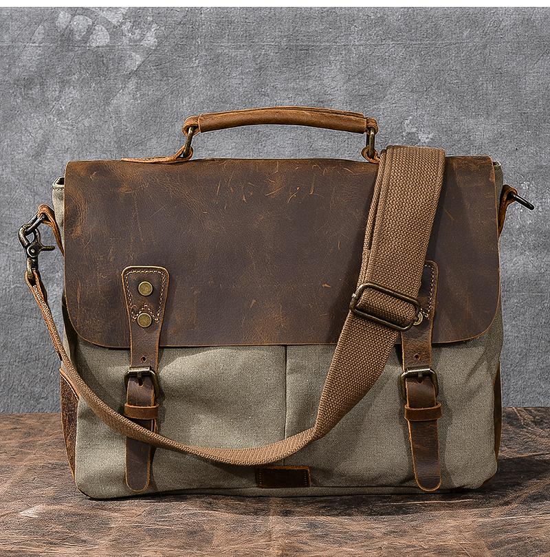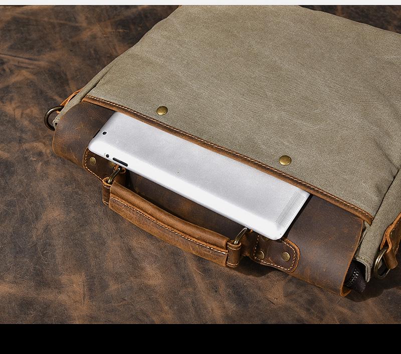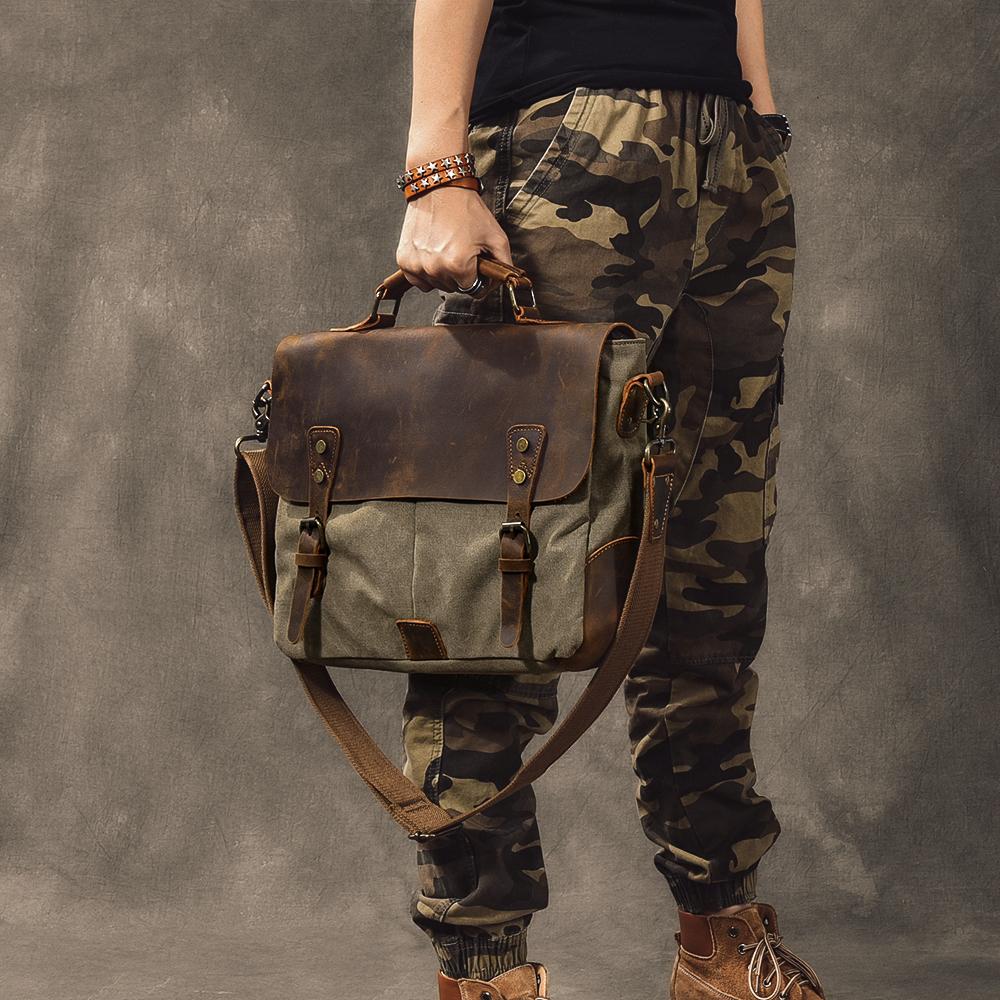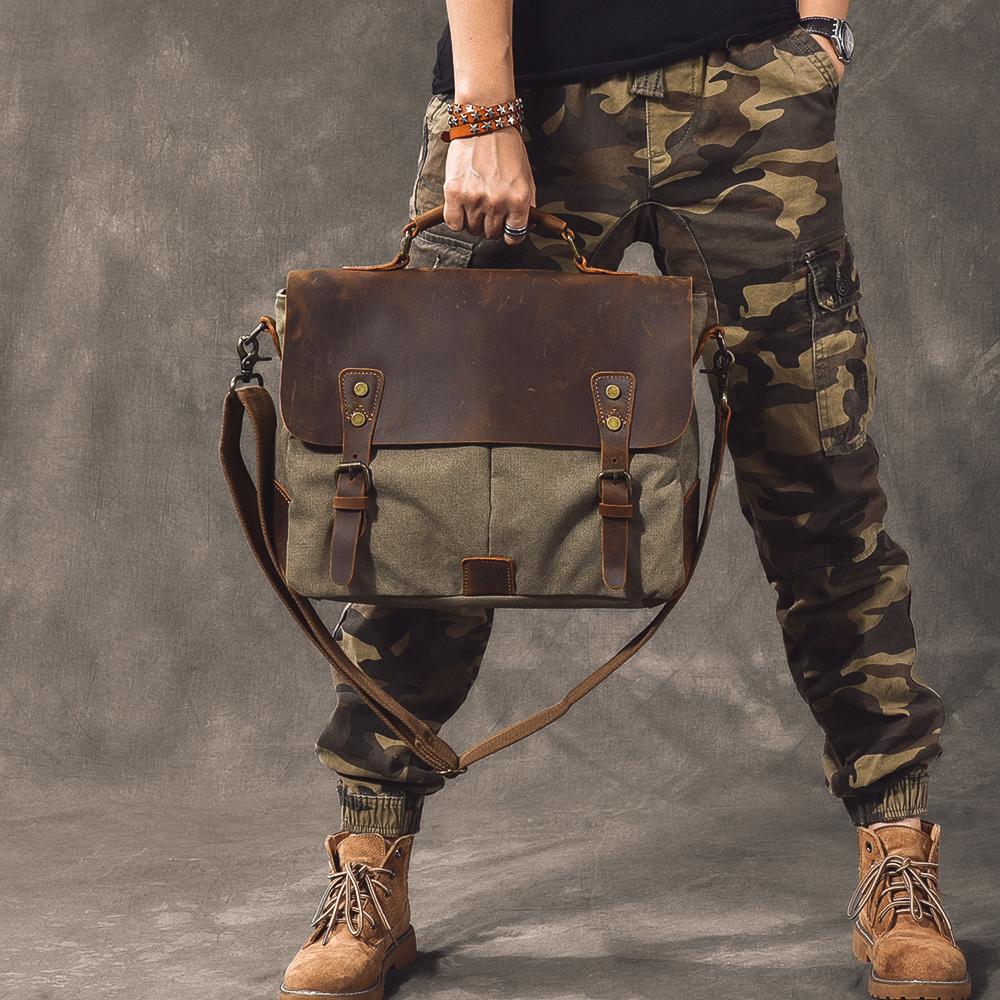 Canvas Leather Mens Womens Green Briefcase Side Bag Brown Messenger Bag Shoulder Bag For Men