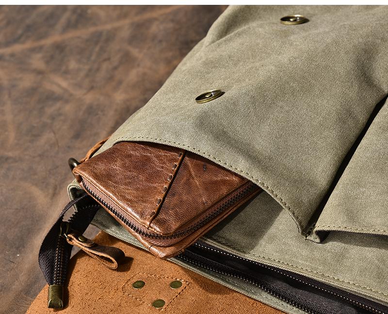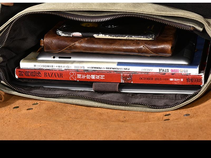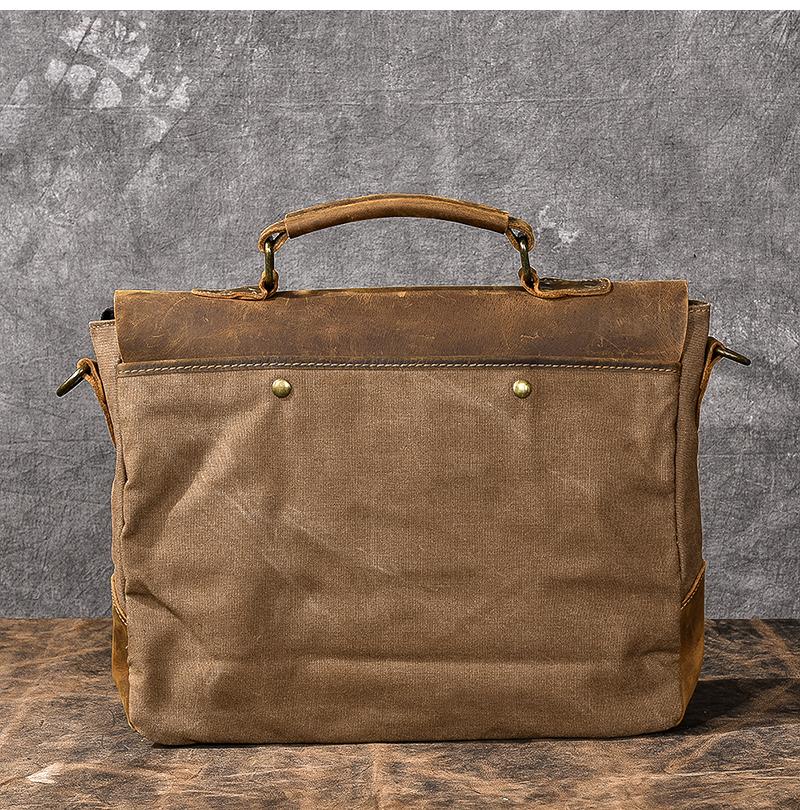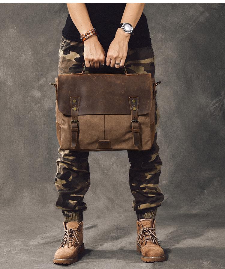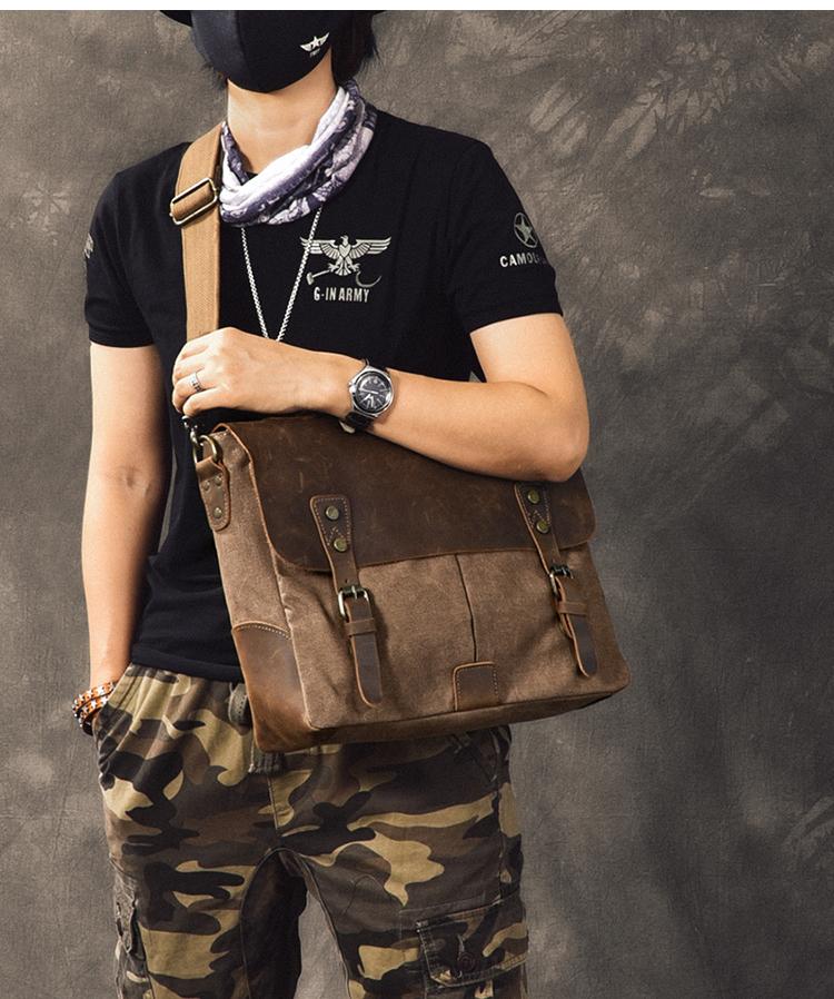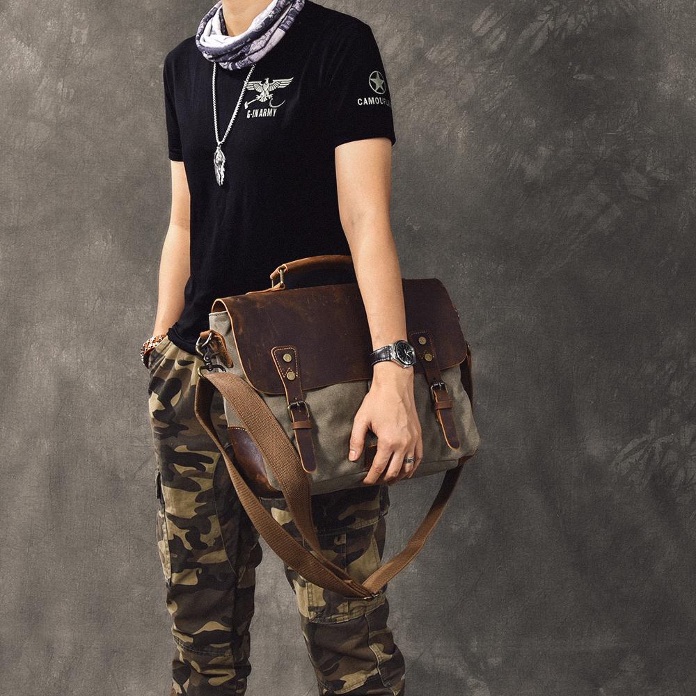 Canvas Leather Mens Womens Green Briefcase Side Bag Brown Messenger Bag Shoulder Bag For Men