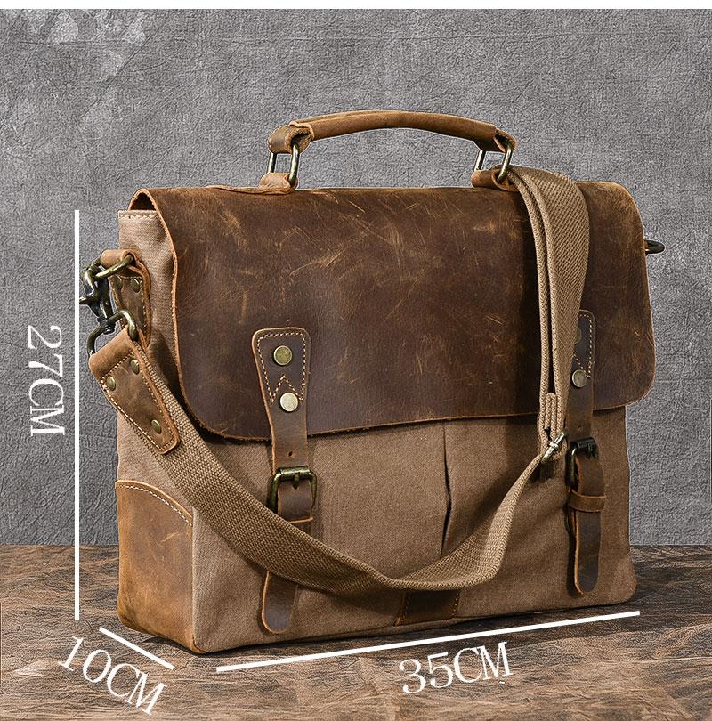 Design: Canvas Leather Mens Womens Green Briefcase Side Bag Brown Messenger Bag Shoulder Bag For Men
