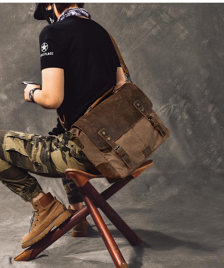 Style: Canvas Leather Mens Womens Green Briefcase Side Bag Brown Messenger Bag Shoulder Bag For Men