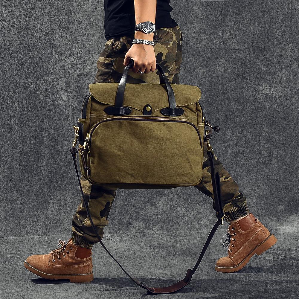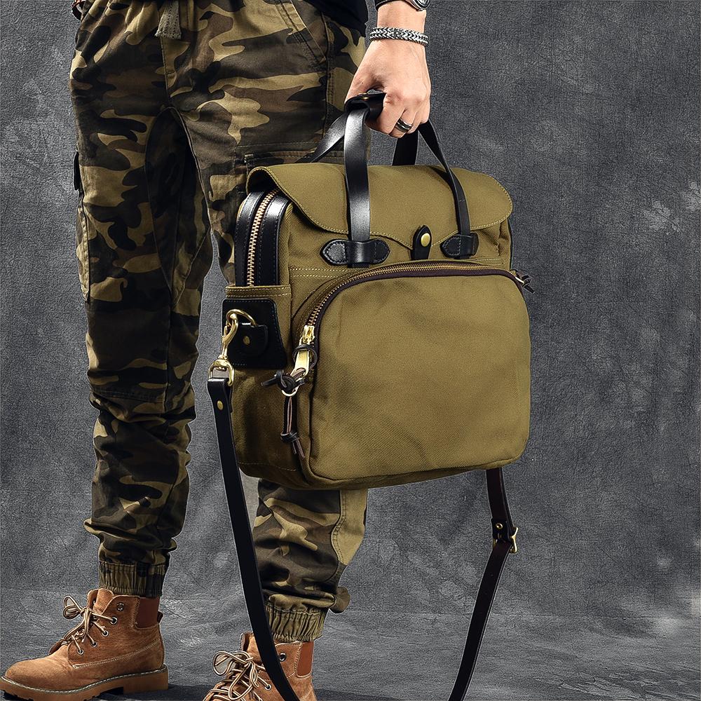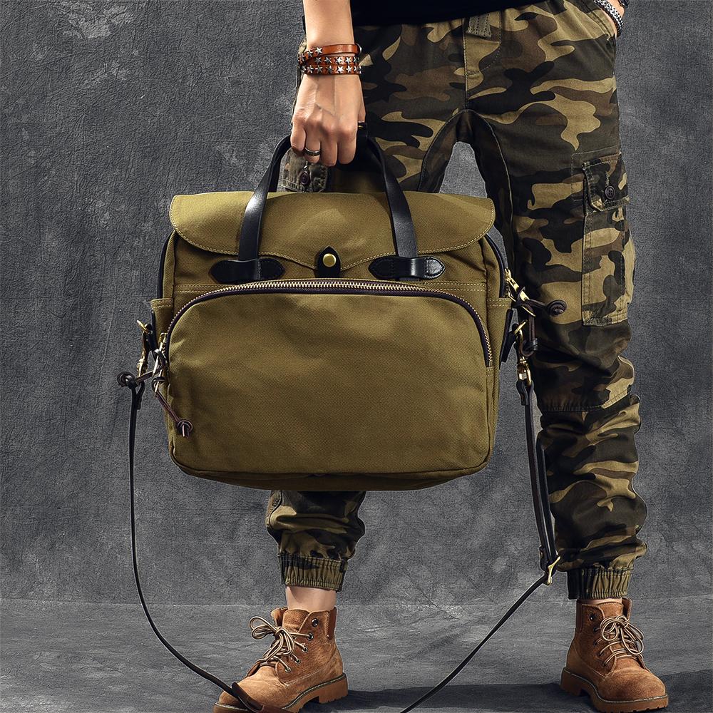 Style: Canvas Leather Mens Womens Khaki Briefcase Side Bag Small Messenger Bag Shoulder Bag For Men