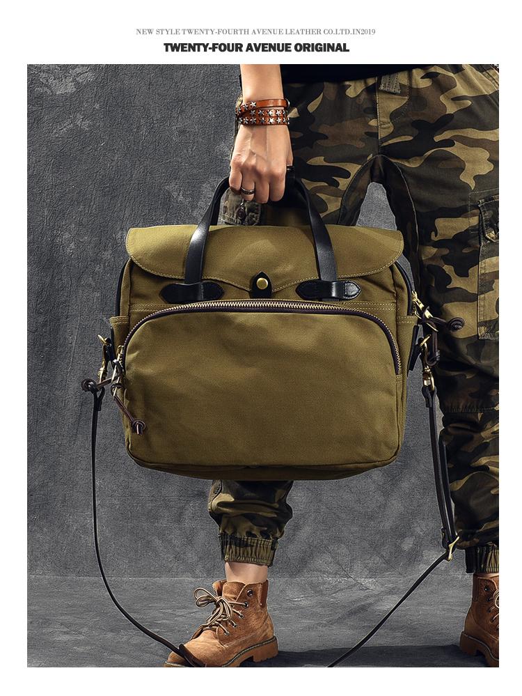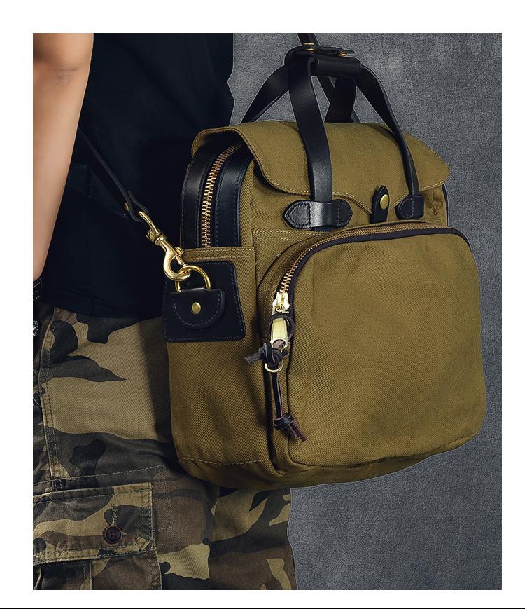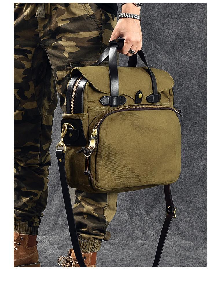 Design: Canvas Leather Mens Womens Khaki Briefcase Side Bag Small Messenger Bag Shoulder Bag For Men