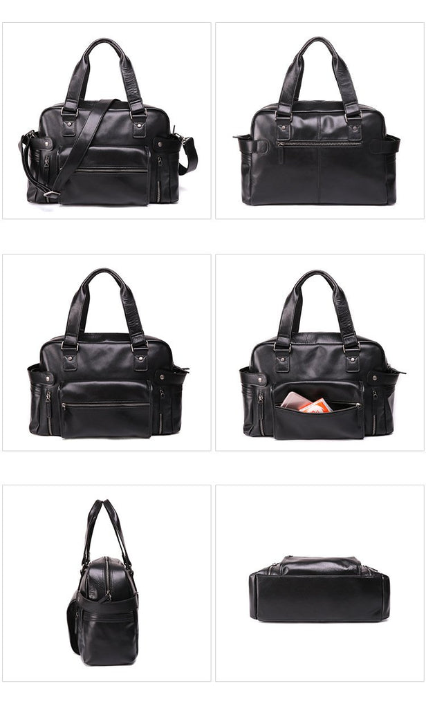 Design: Casual Leather Mens 13 inches Black Messenger Bag Travel Bag Handbag Shoulder Bag for Men