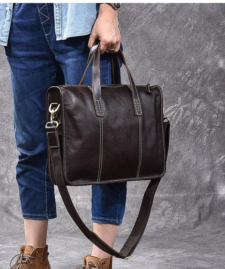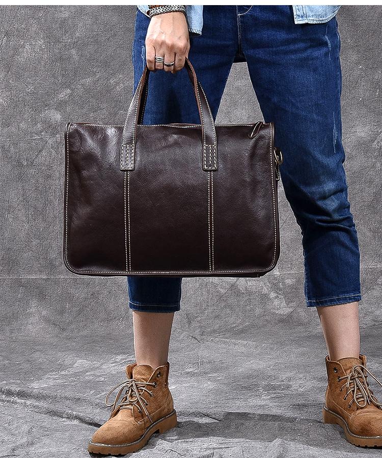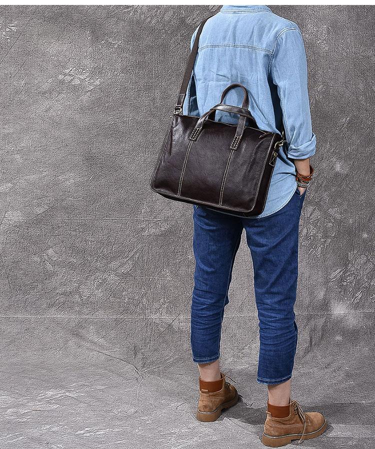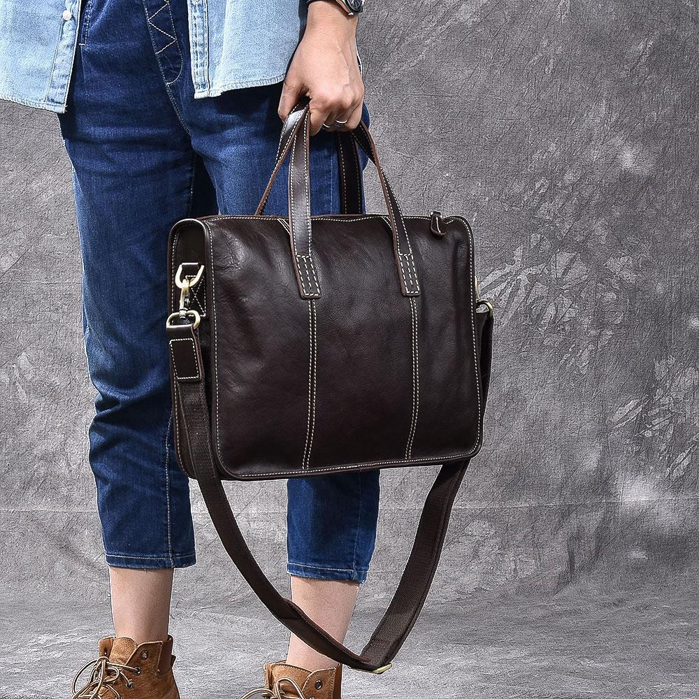 Style: Coffee Leather Mens 13" Black Laptop Briefcase Business Brown Large Handbag For Men