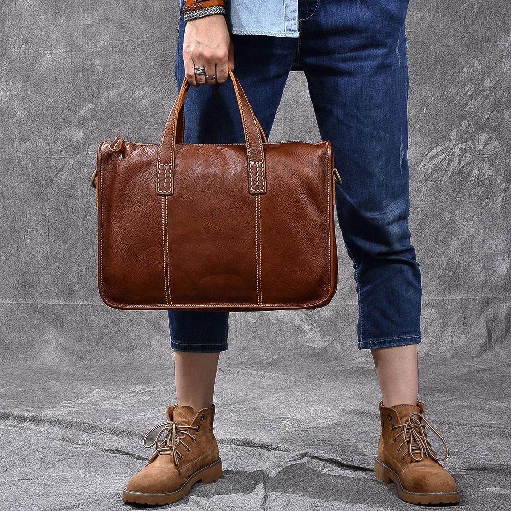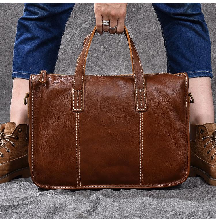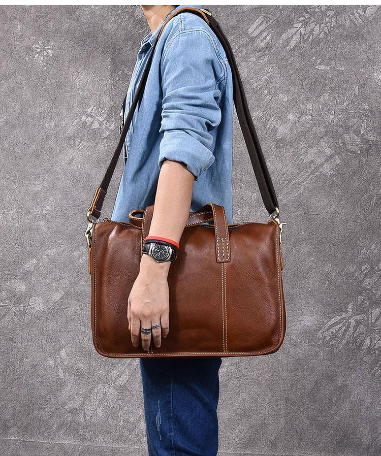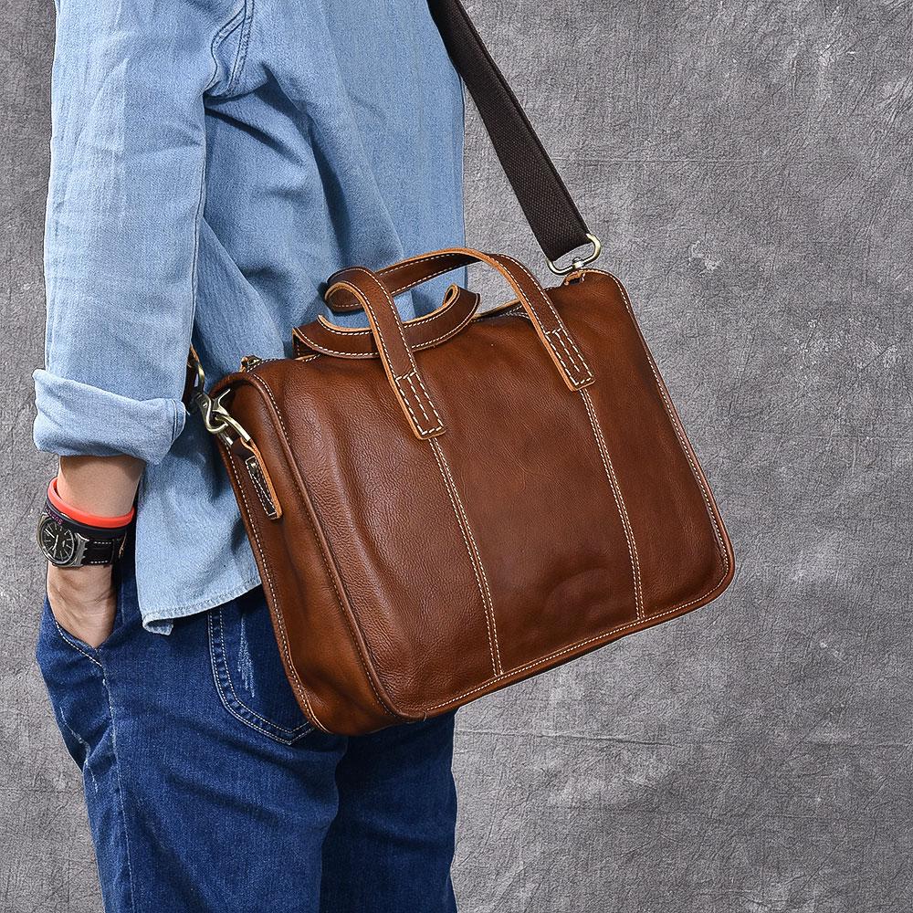 Style: Coffee Leather Mens 13" Black Laptop Briefcase Business Brown Large Handbag For Men