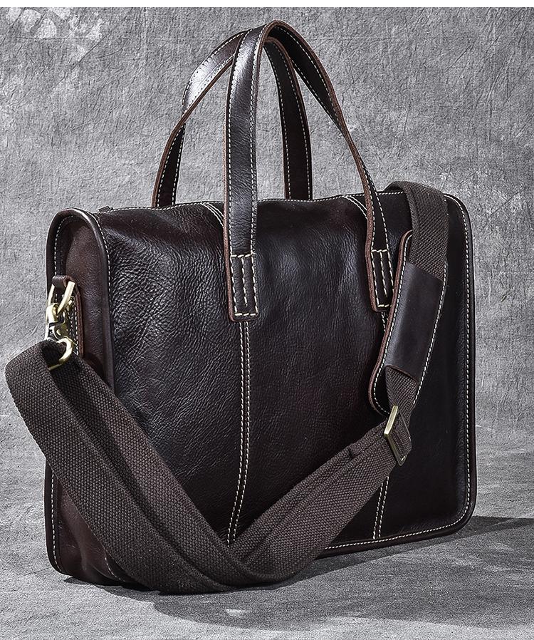 Design: Coffee Leather Mens 13" Black Laptop Briefcase Business Brown Large Handbag For Men