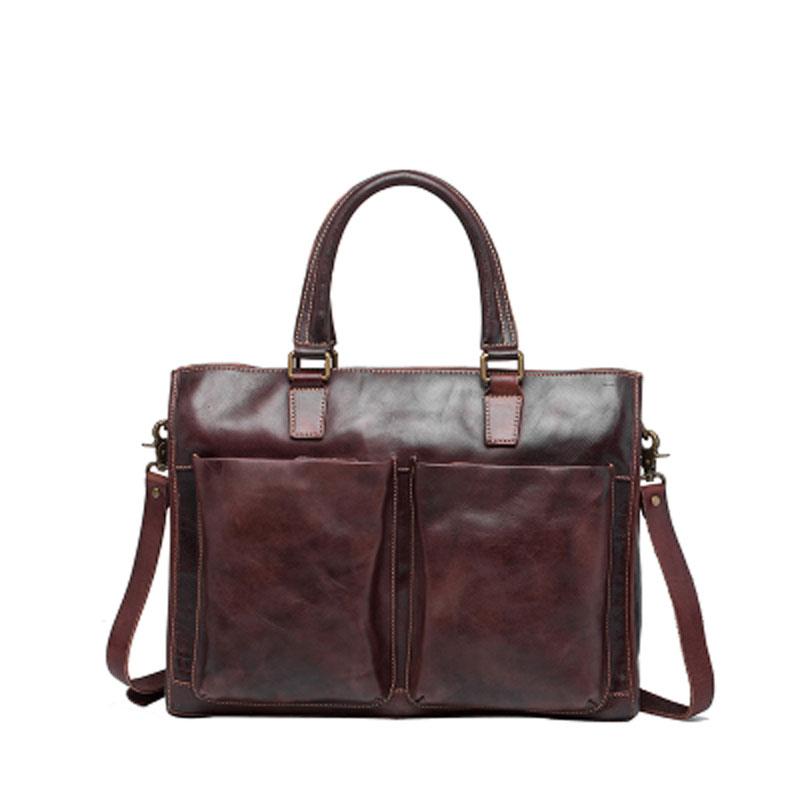Design: Cool Coffee Leather Mens Briefcase Work Handbag Laptop Bag Business Bag for Men