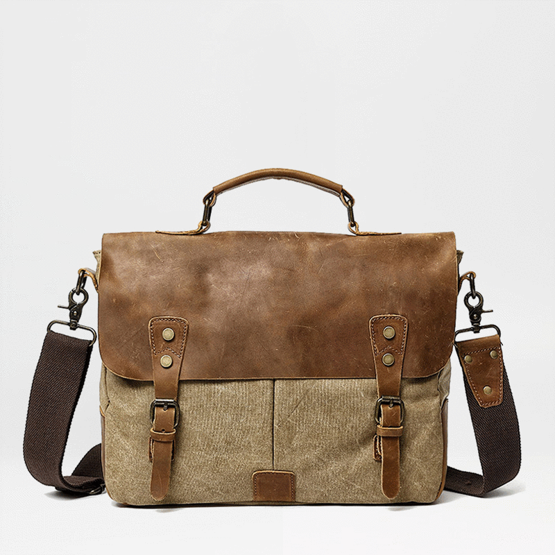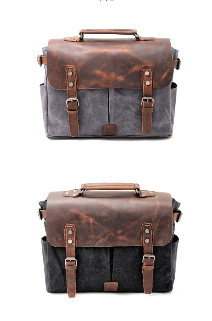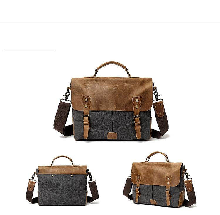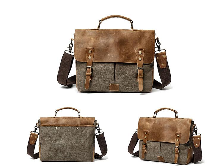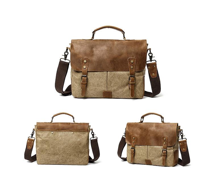 Style: Cool Canvas Leather Mens Casual Briefcase Computer Bag Messenger Bag Backpack For Men