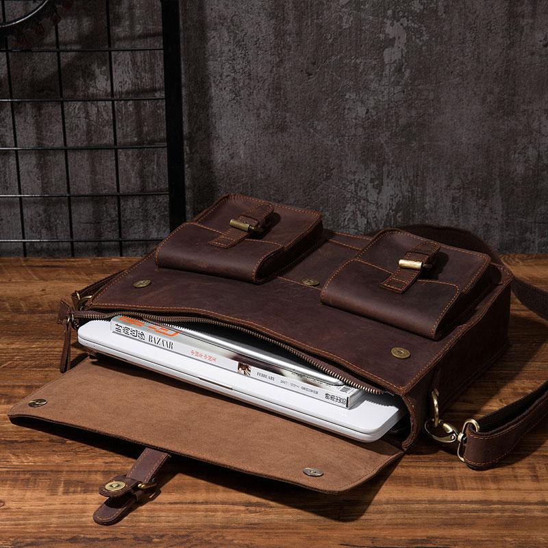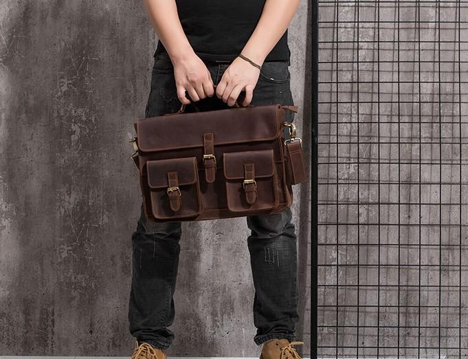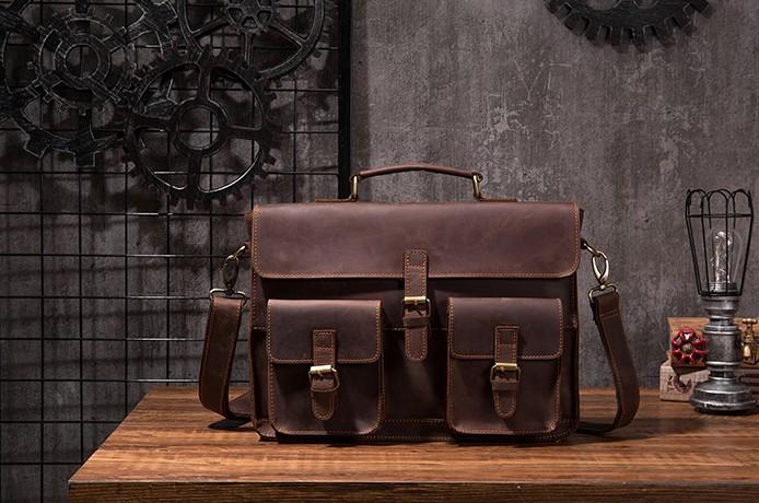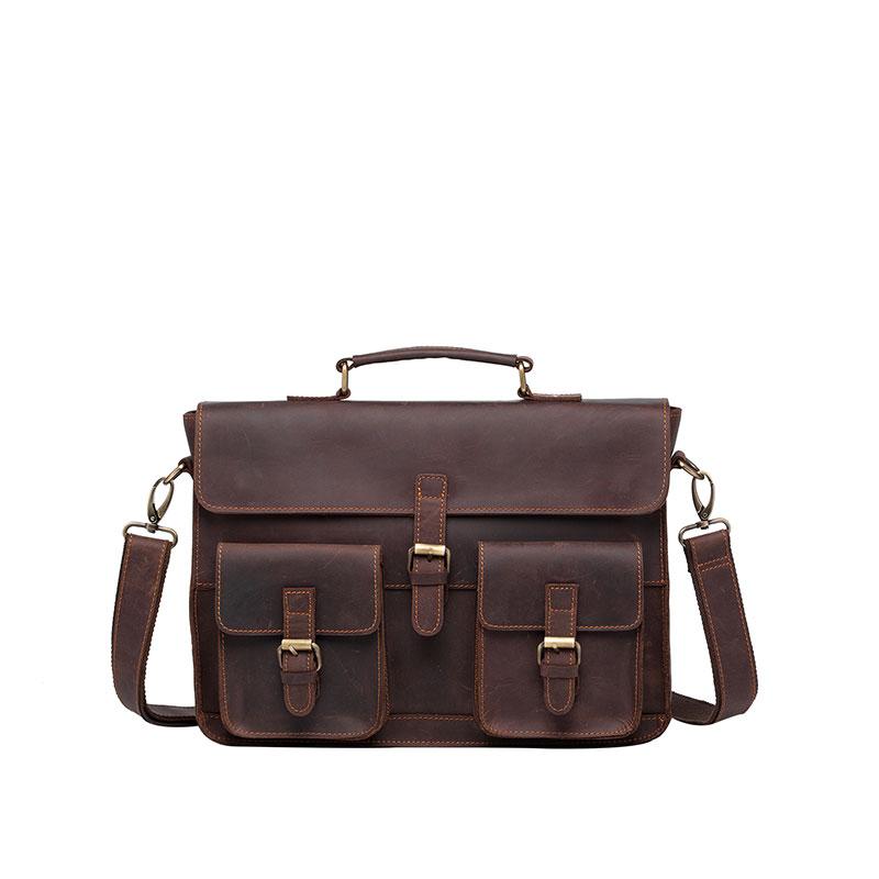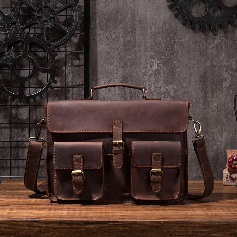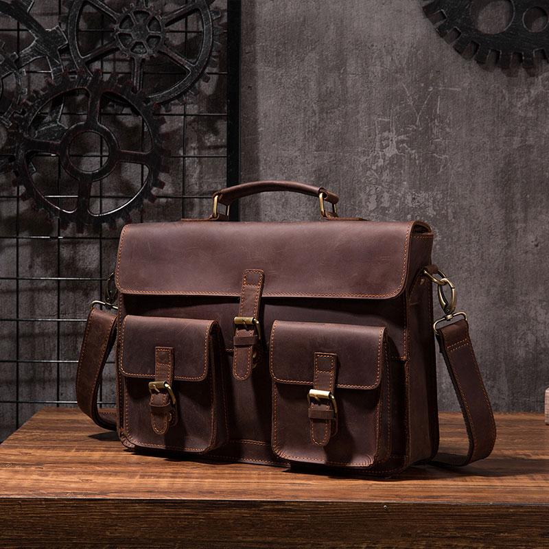 Design: Cool Coffee Leather Mens Briefcase 14inch Laptop Bag Work Handbag Business Bag for Men