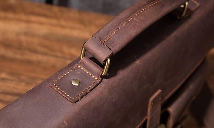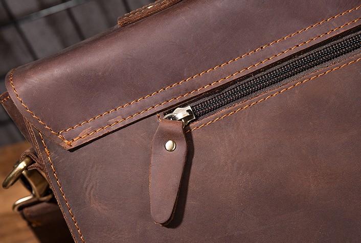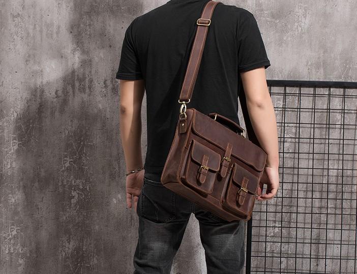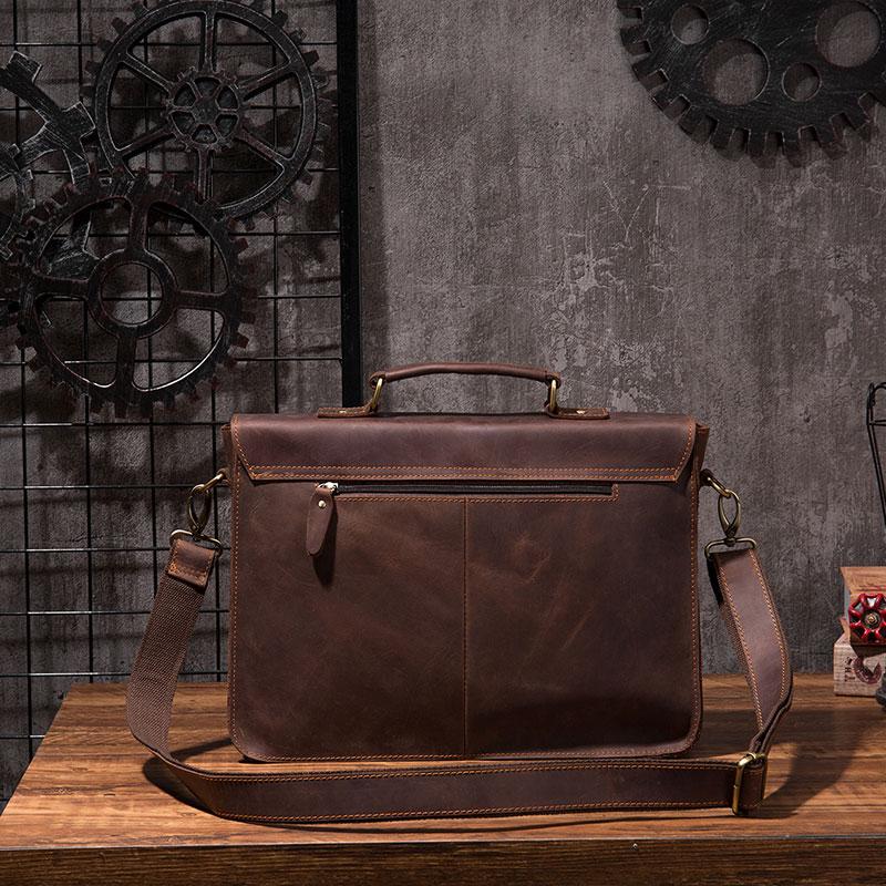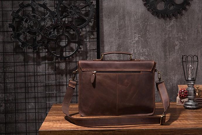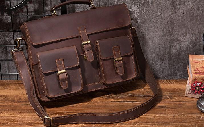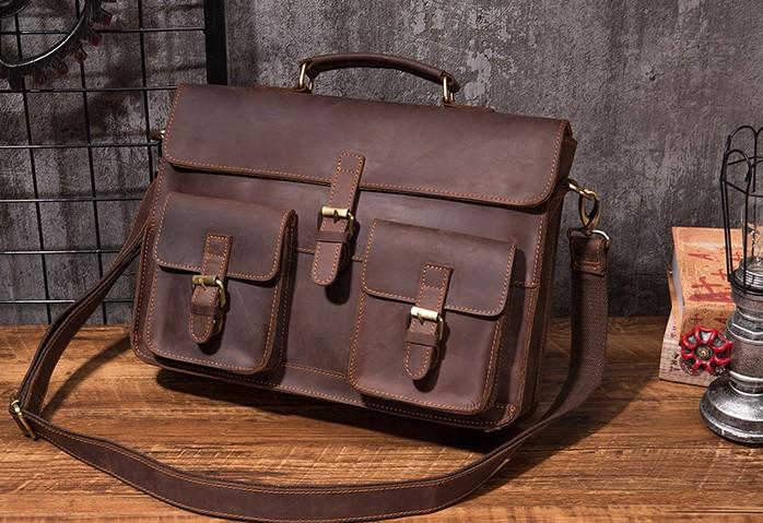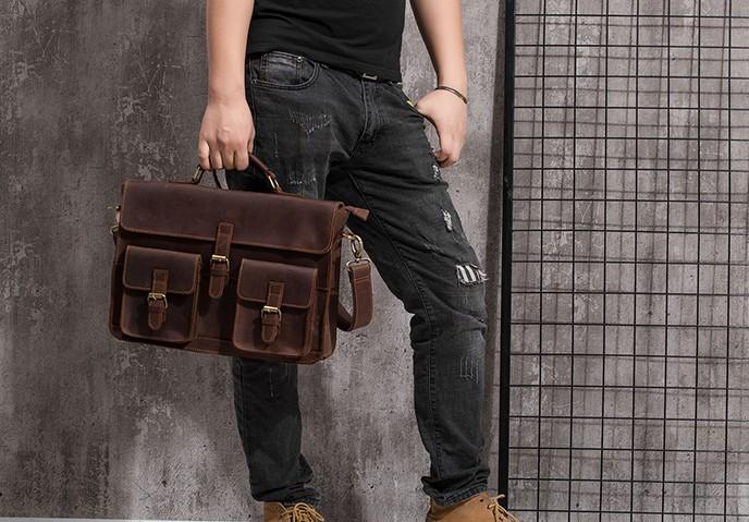 Design: Cool Coffee Leather Mens Briefcase 14inch Laptop Bag Work Handbag Business Bag for Men