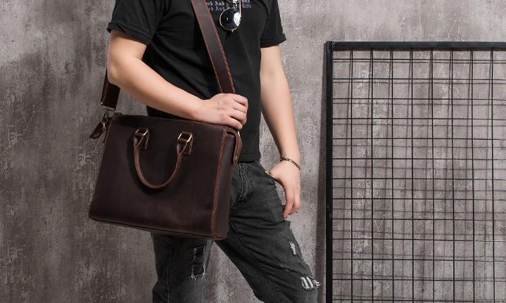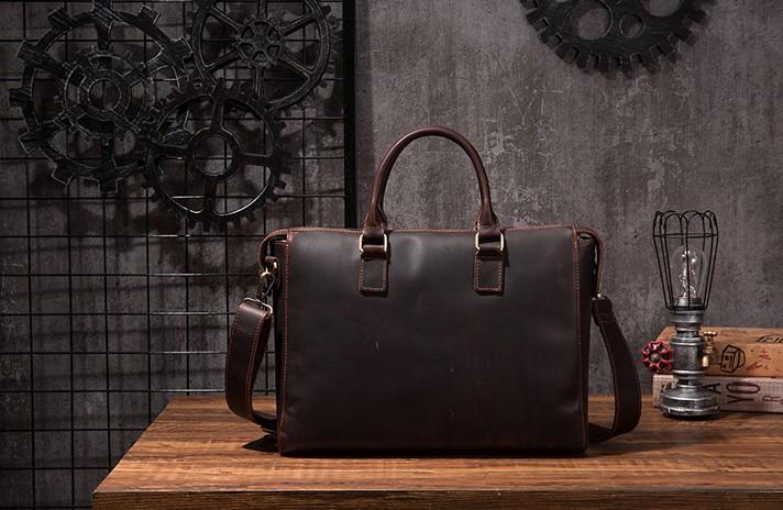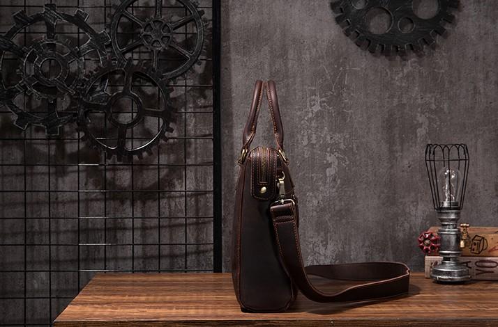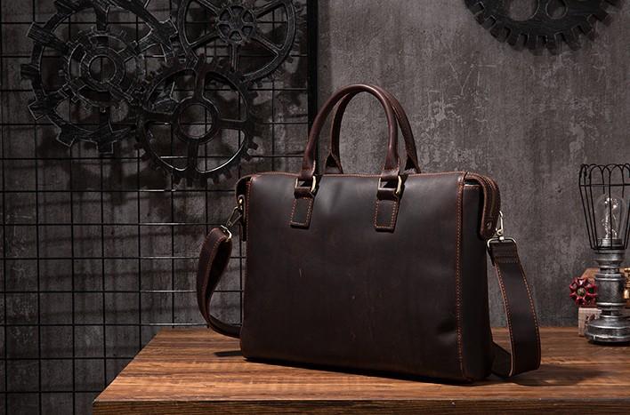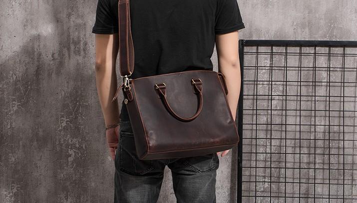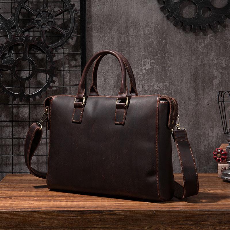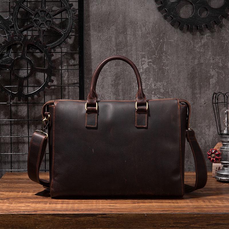 Design: Cool Coffee Leather Mens Briefcase Work Handbag Laptop Bag Business Bag for Men