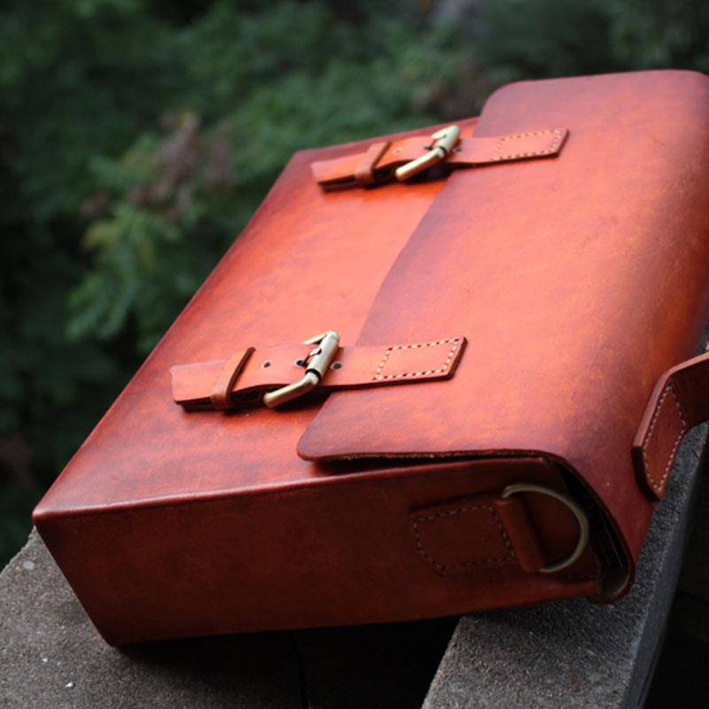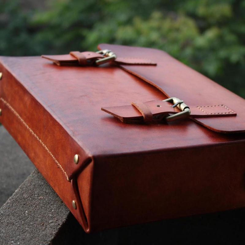 Design: Cool Handmade Leather Mens Briefcase Business Laptop Briefcase for men