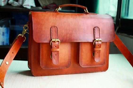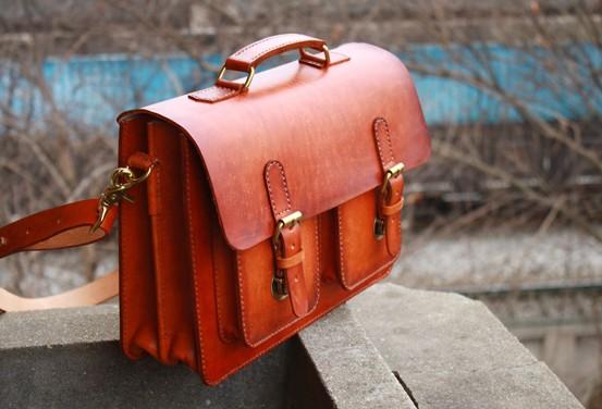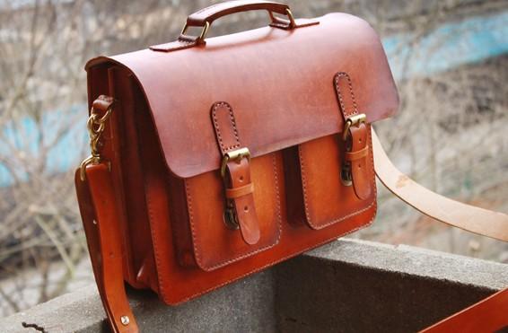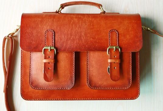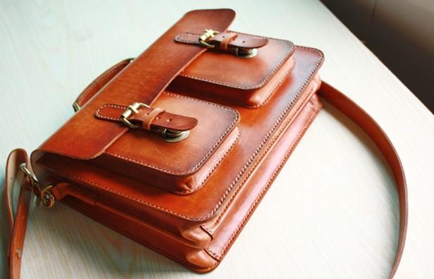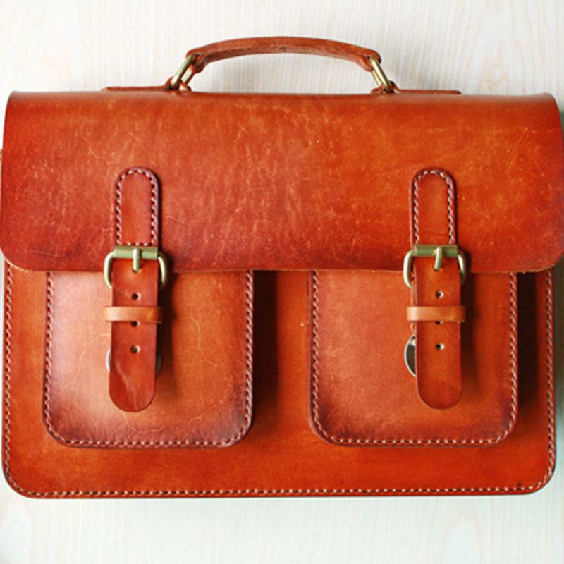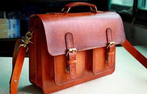 Design: Cool Handmade Leather Mens Messenger Bag Briefcase School Bag for men