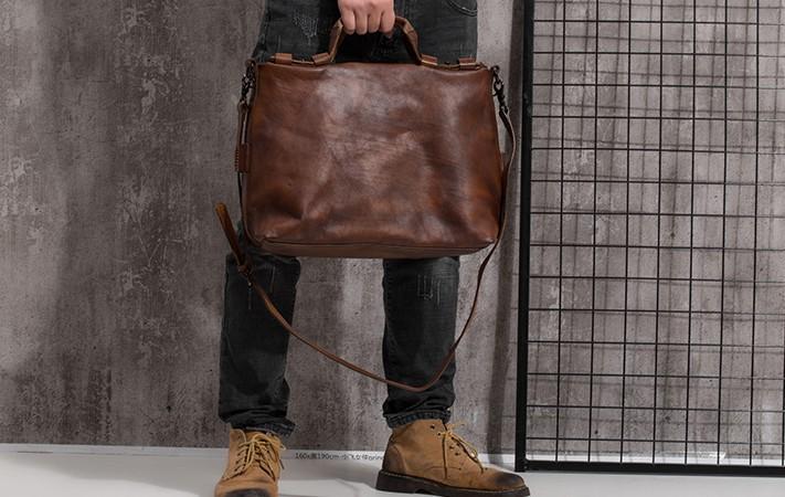 Design: Cool Coffee Leather Mens Briefcase Work Handbag Laptop Bag Business Bag for Men