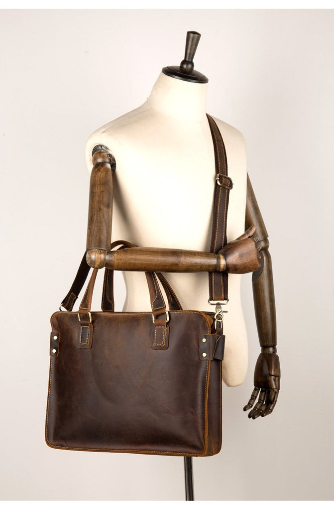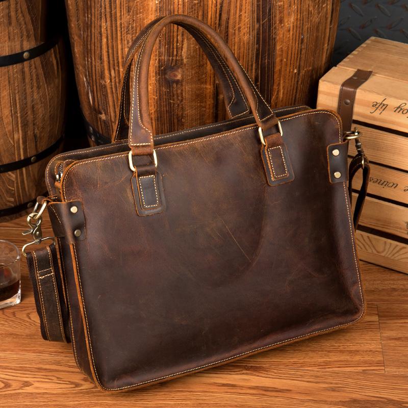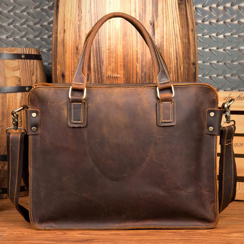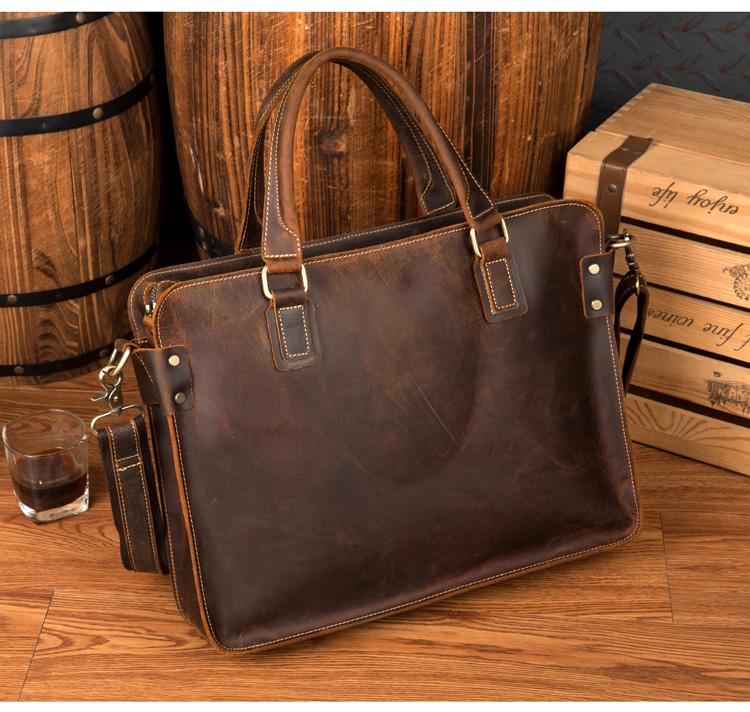 Vintage Brown Leather Mens 14 inches Briefcase Laptop Briefcase Business Bags Work Bags for Men