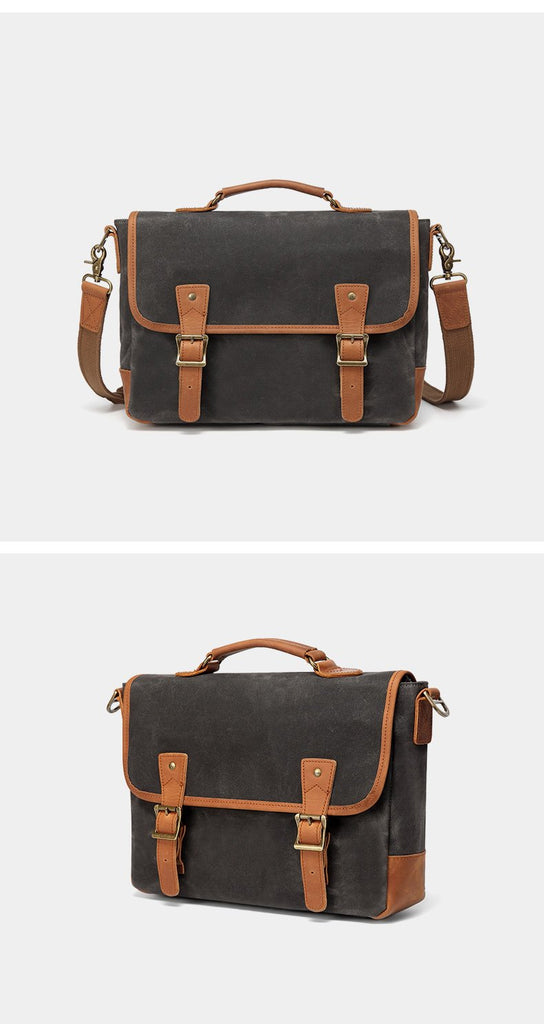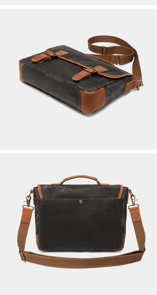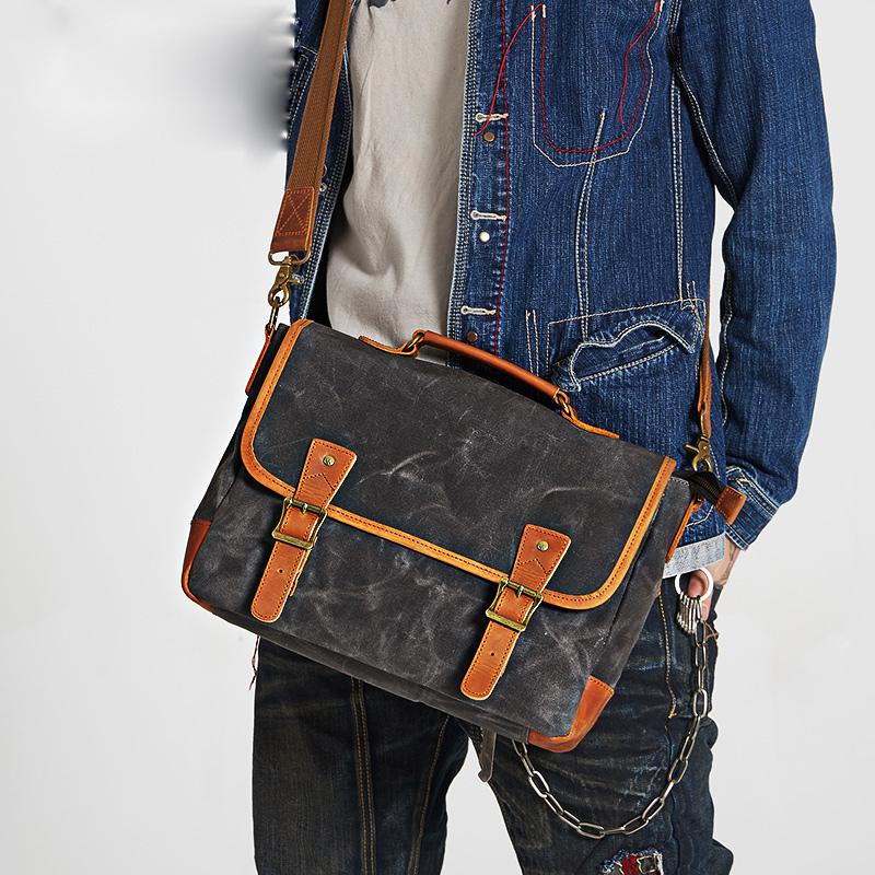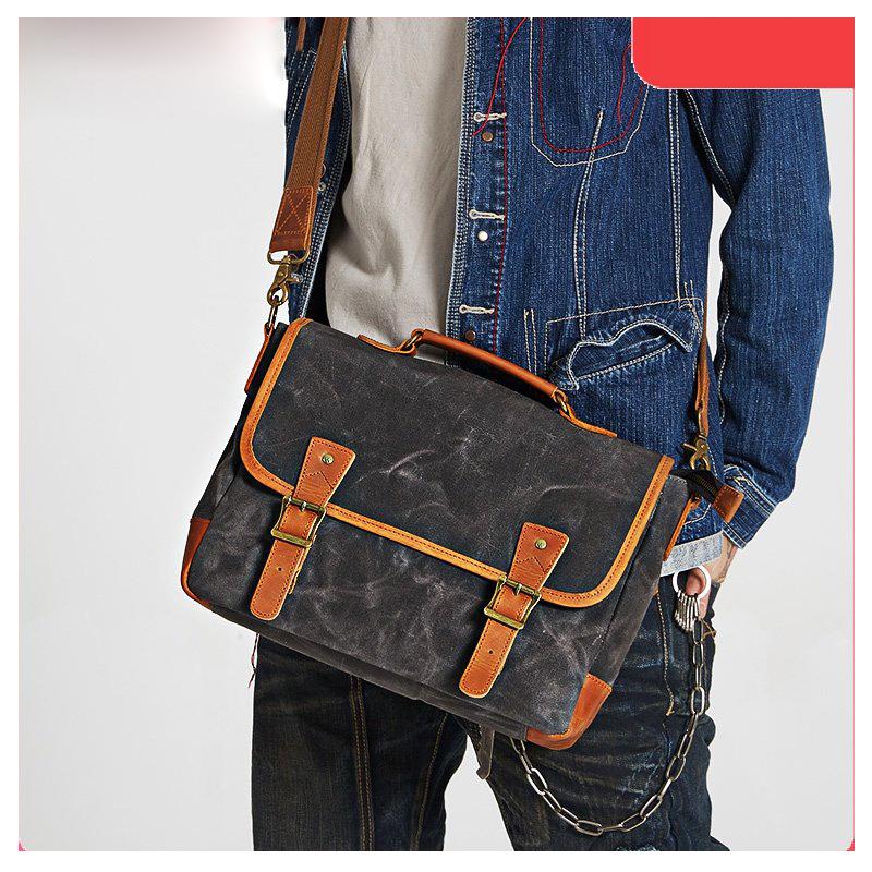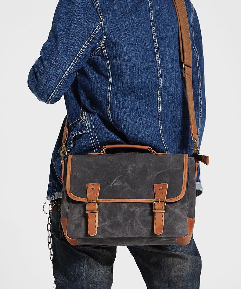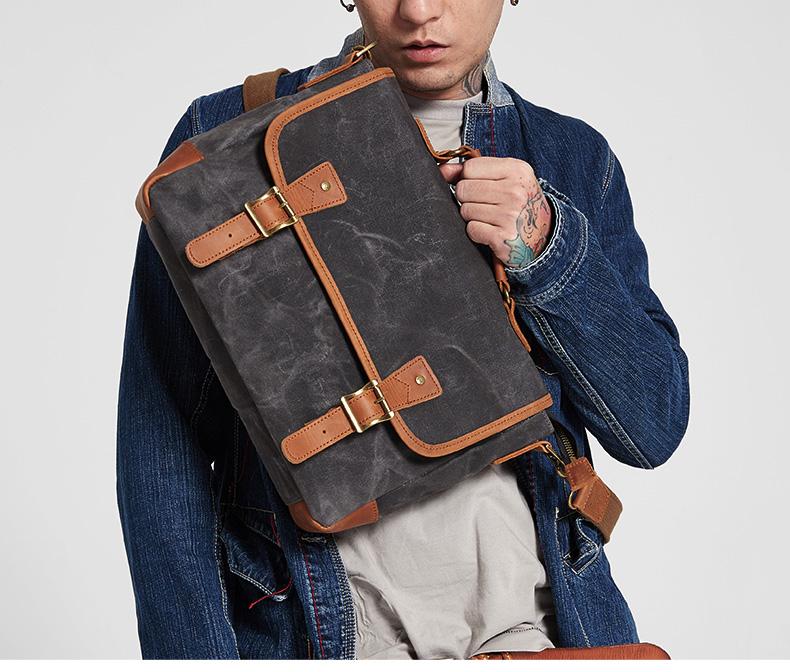Design: Dark Gray Leather Canvas Mens Casual Briefcase Shoulder Bag Messenger Bags Casual Courier Bags for Men