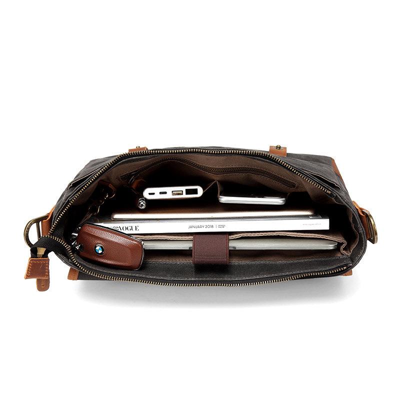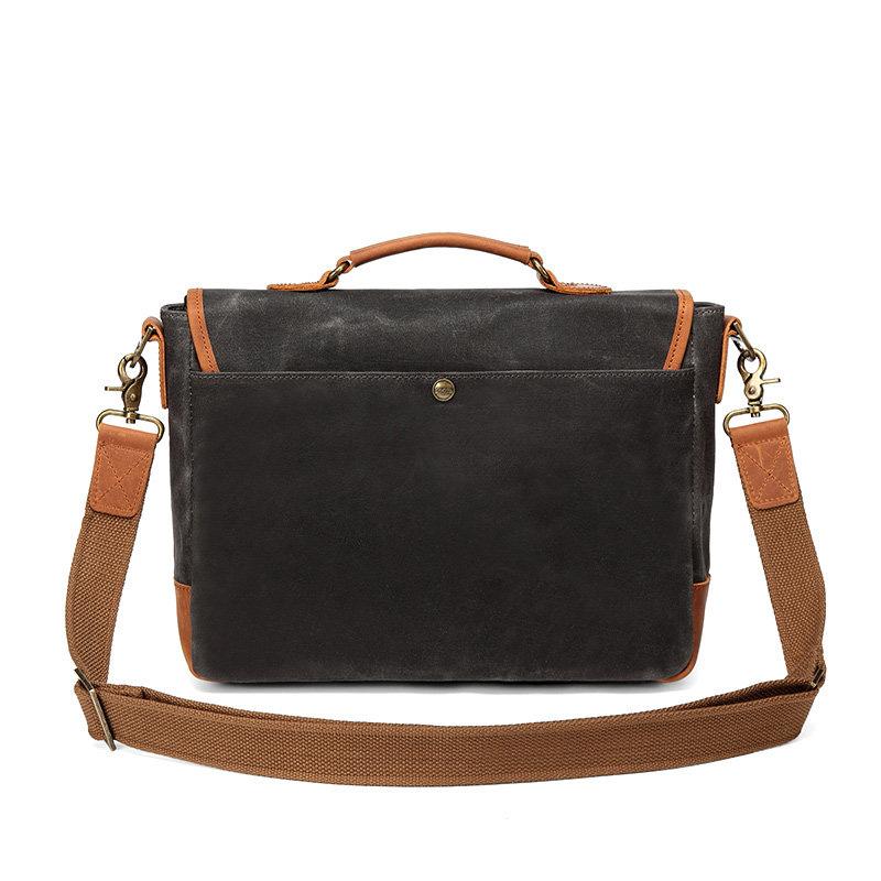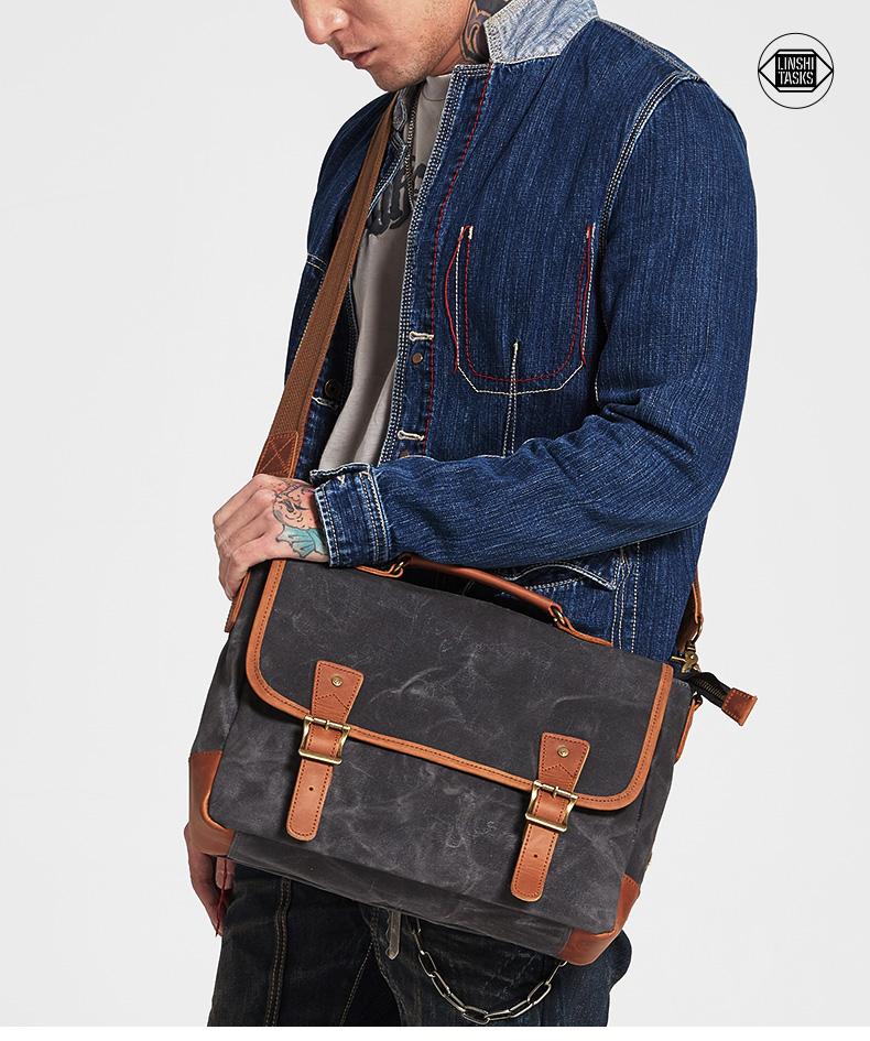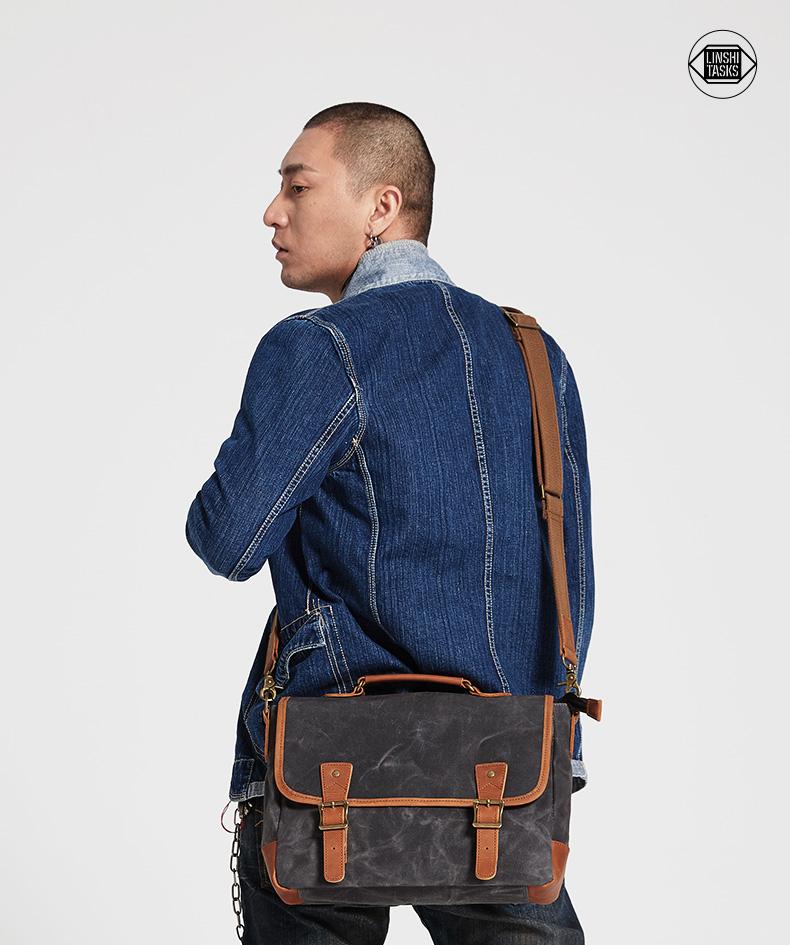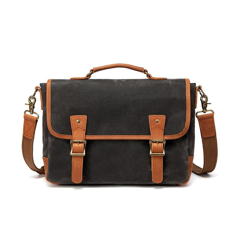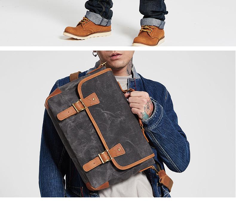 Design: Dark Gray Leather Canvas Mens Casual Briefcase Shoulder Bag Messenger Bags Casual Courier Bags for Men