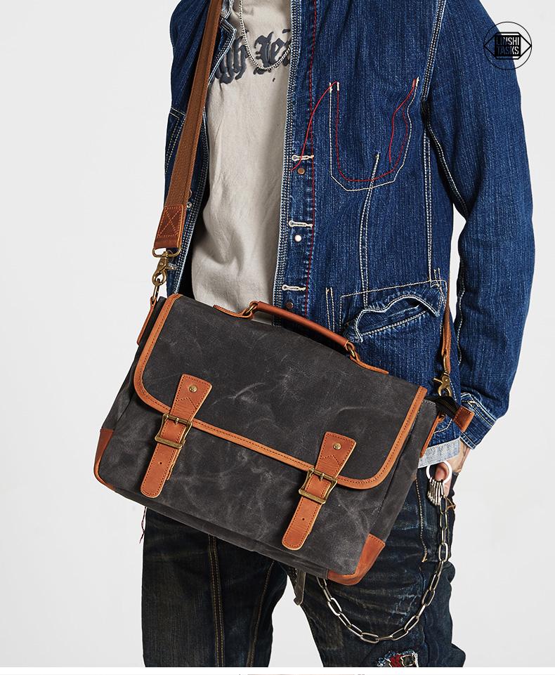Style: Dark Gray Leather Canvas Mens Casual Briefcase Shoulder Bag Messenger Bags Casual Courier Bags for Men