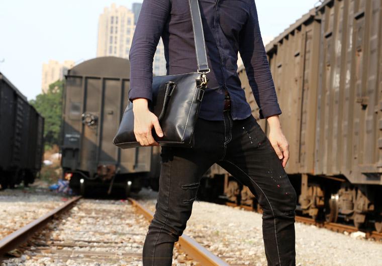 Design: Genuine Leather Mens Cool Messenger Bag Briefcase Chest Bag Bike Bag Cycling Bag for men