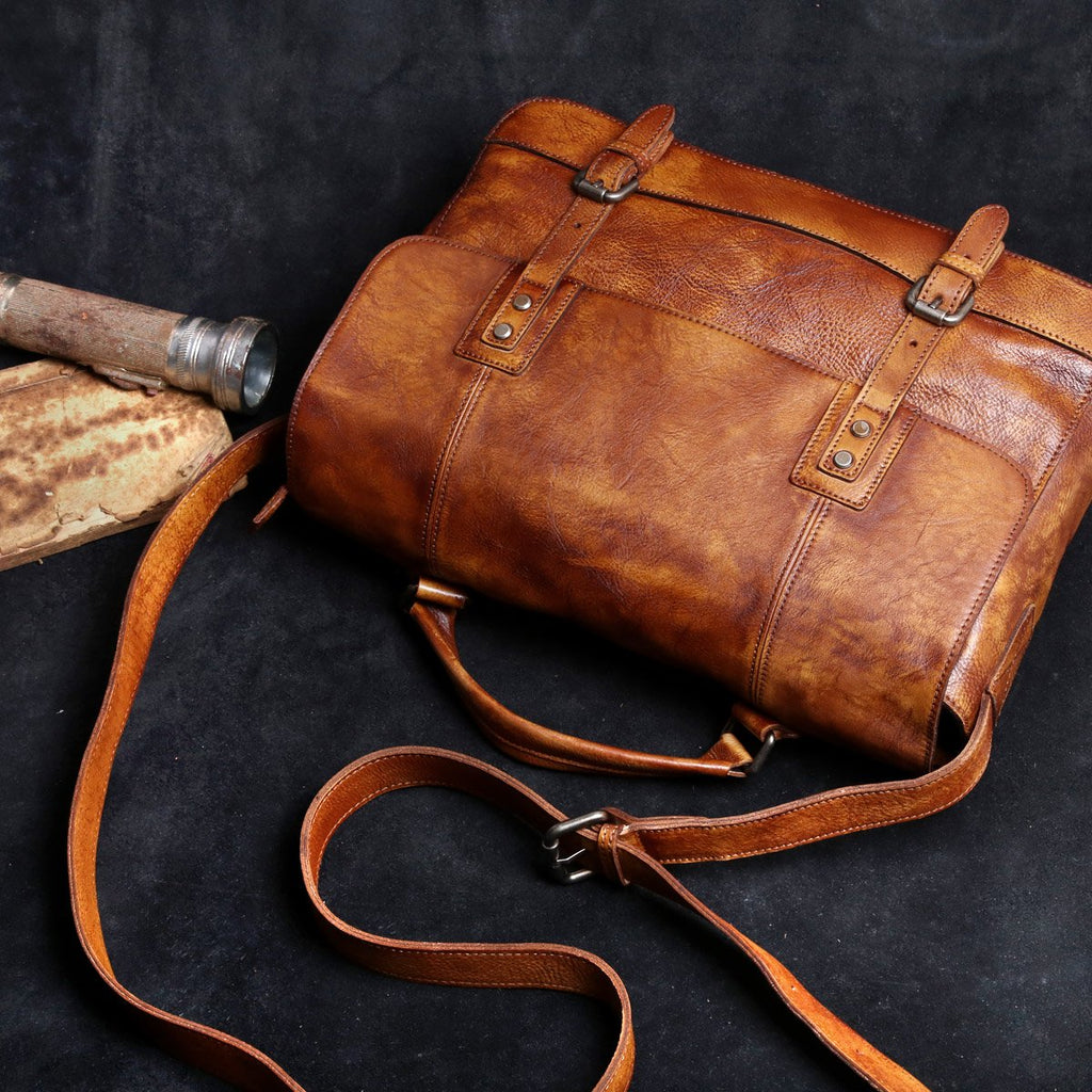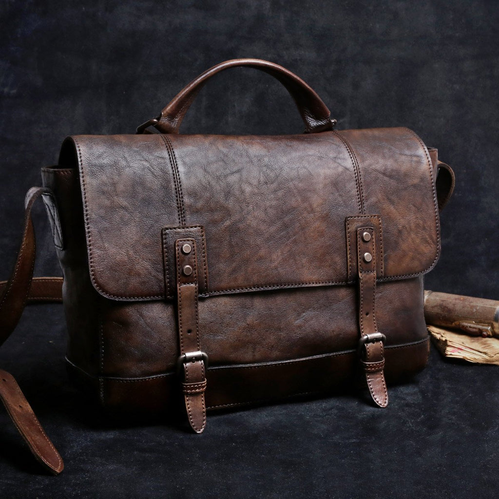 Genuine Leather Mens Cool Messenger Bag Briefcase Chest Bag Bike Bag Cycling Bag for men