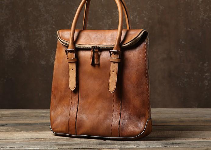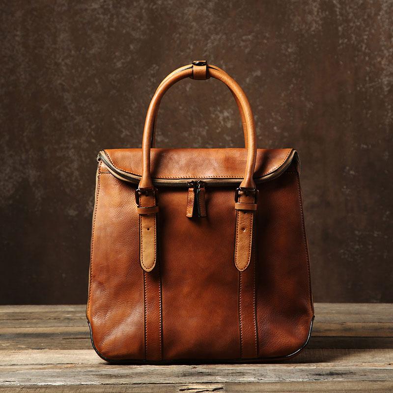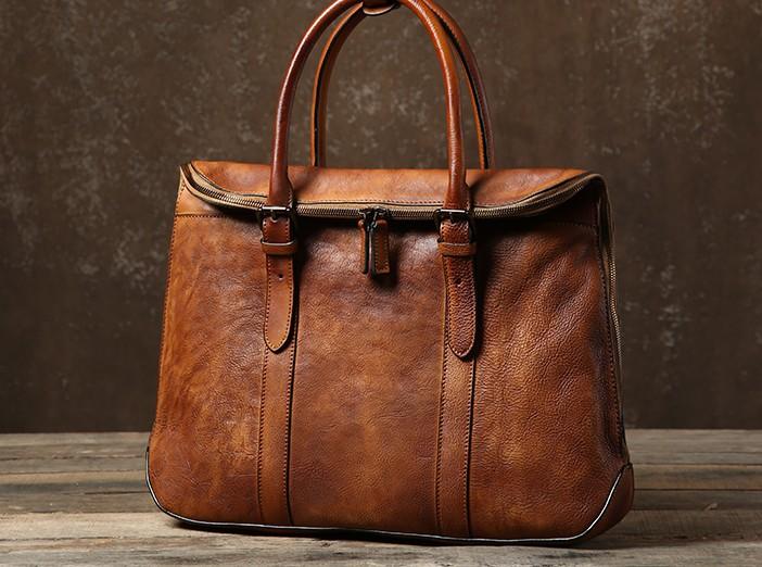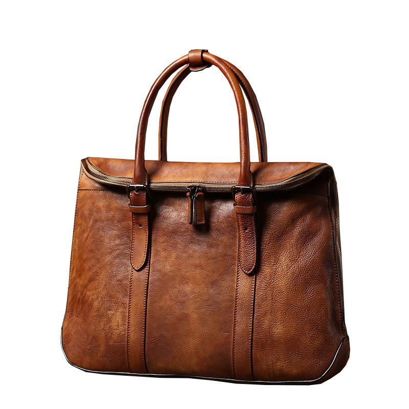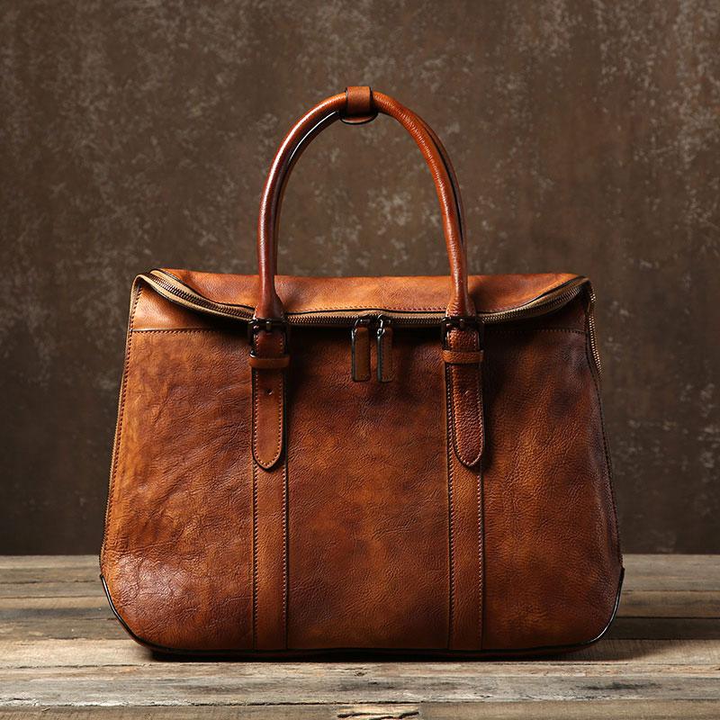 Handmade Leather Mens Vintage Brown Briefcase Work Bag Laptop Bag Business Bag for Men