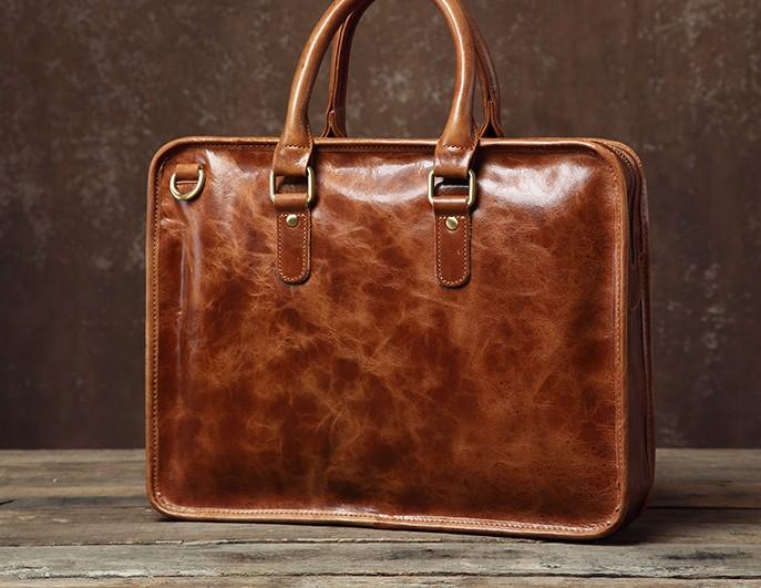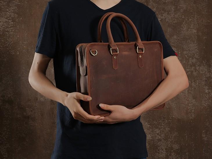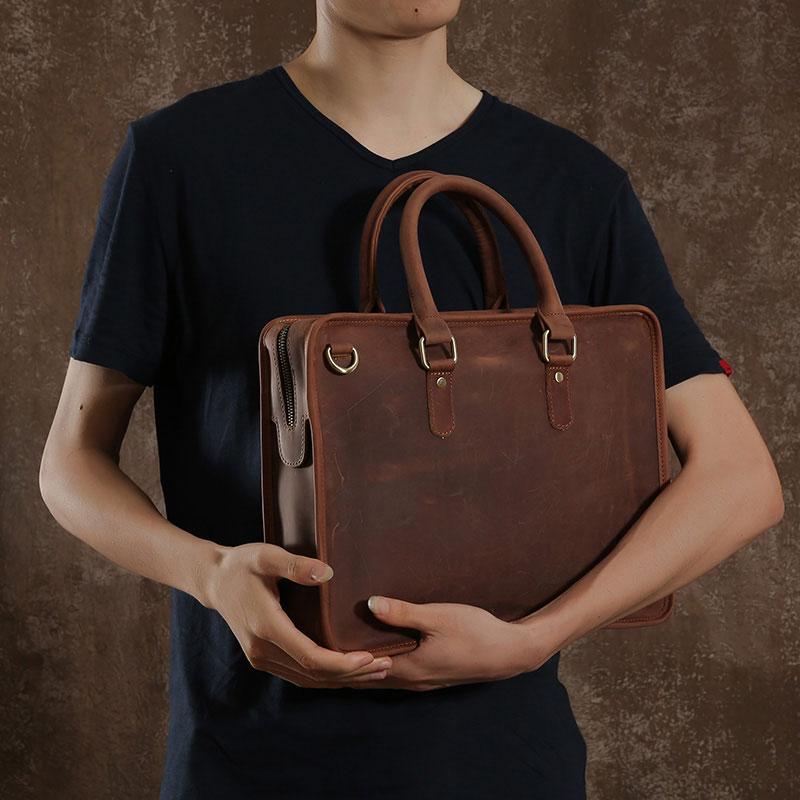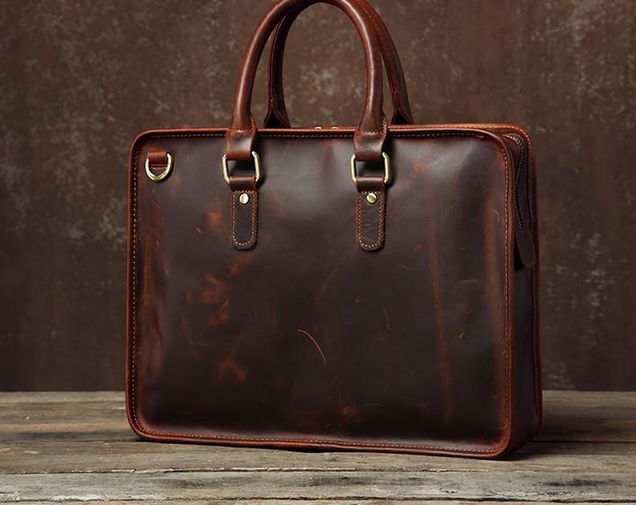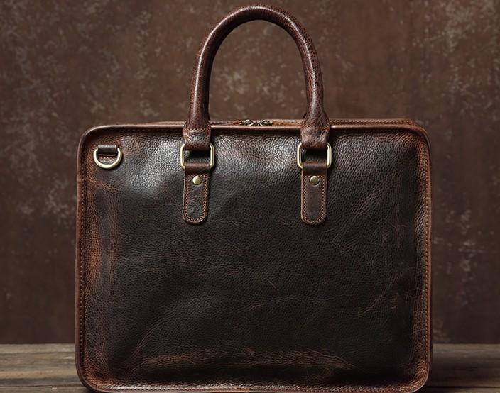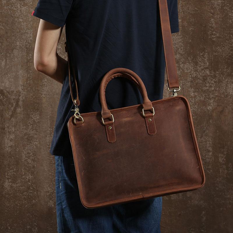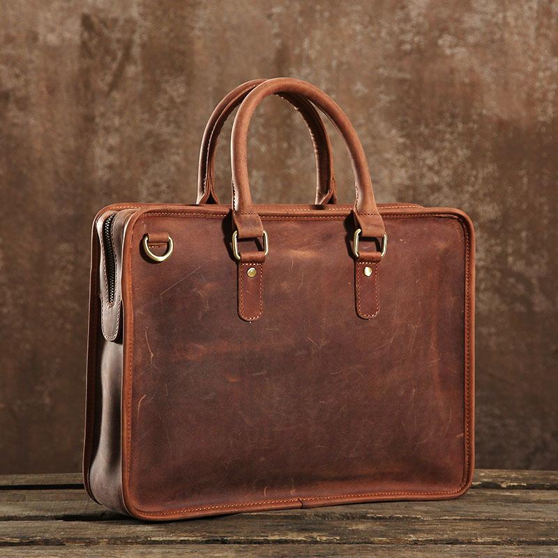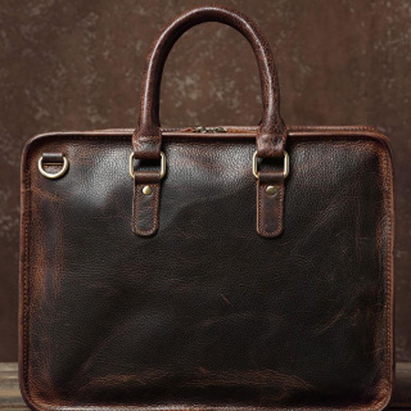 Handmade Leather Mens Cool Vintage Briefcase Work Bag Business Bag Laptop Bag for men