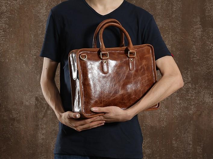 Design: Handmade Leather Mens Cool Messenger Bag Briefcase Work Bag Business Bag Laptop Bag for men