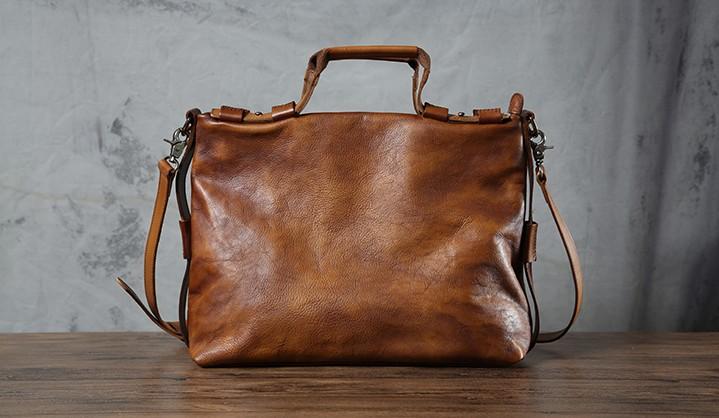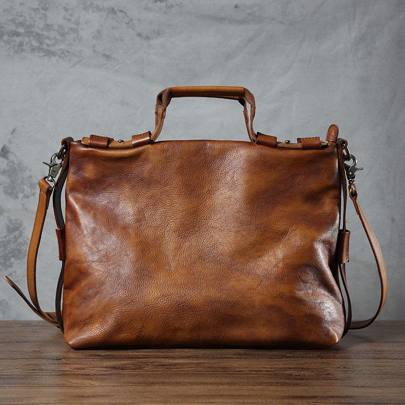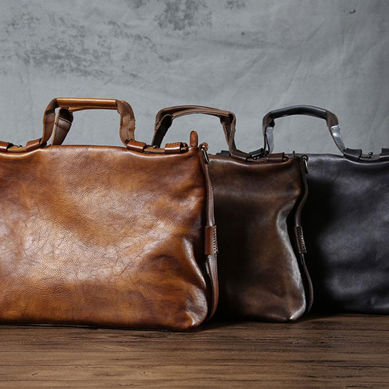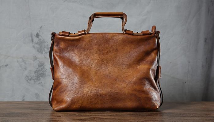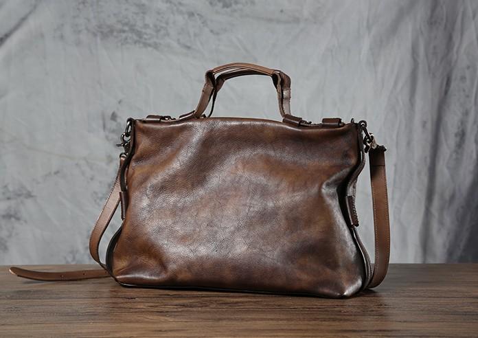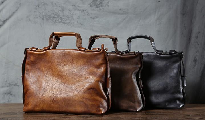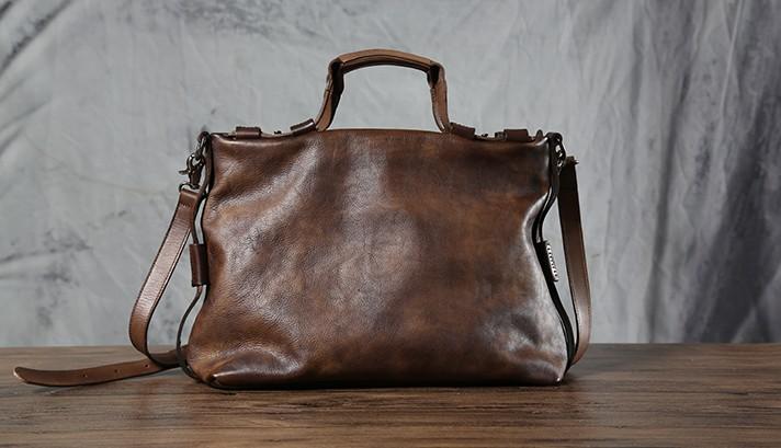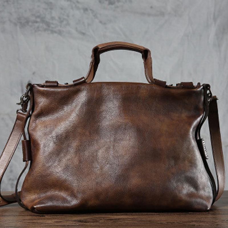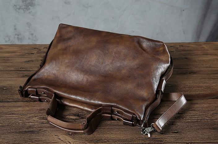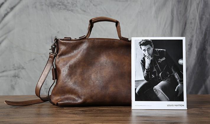 Handmade Leather Mens Cool Vintage Brown Briefcase Shoulder Bag Work Bag Business Bag Laptop Bag for men