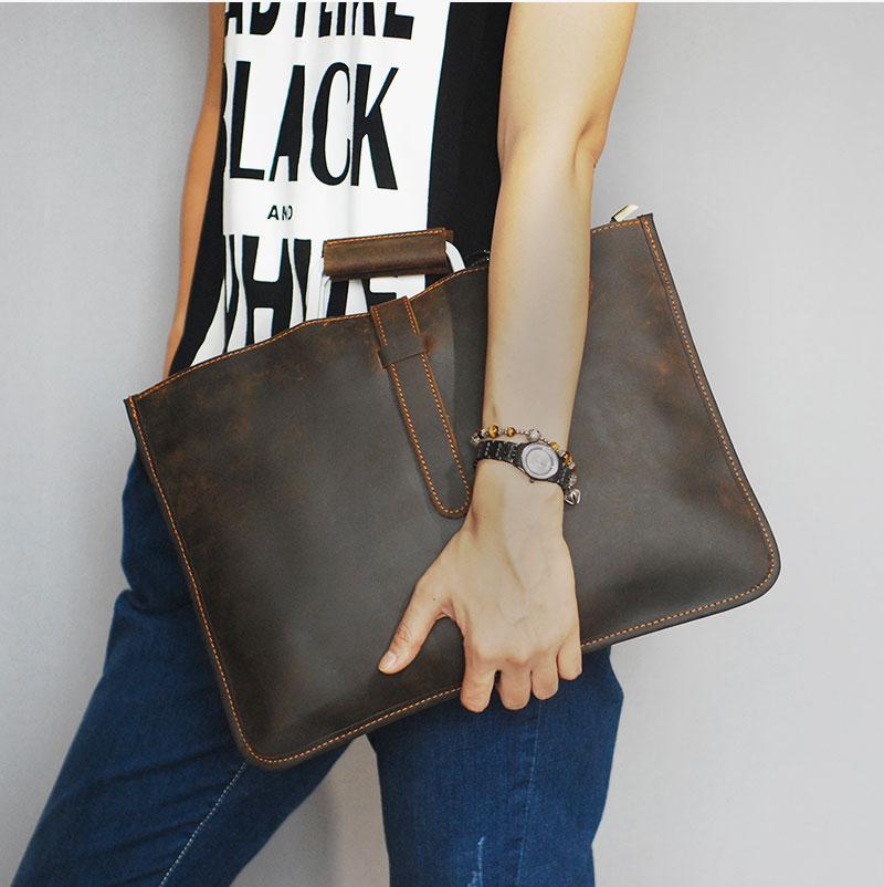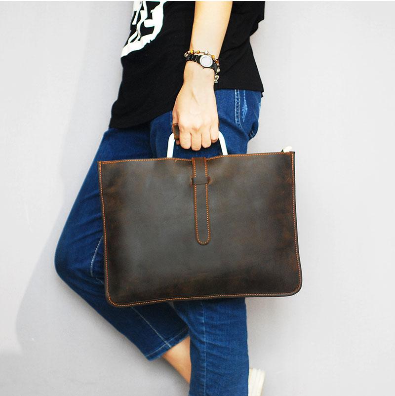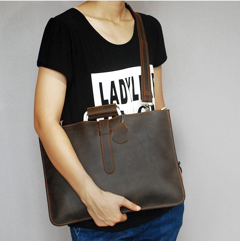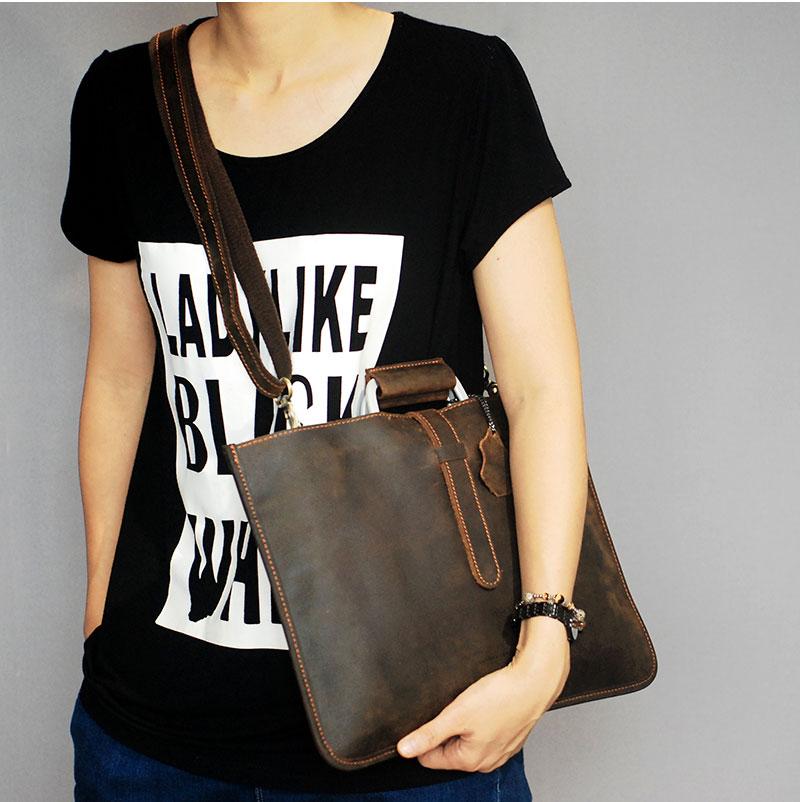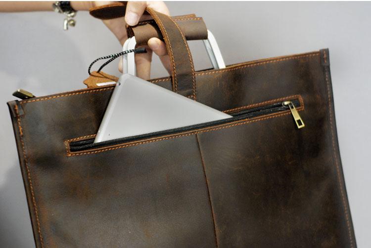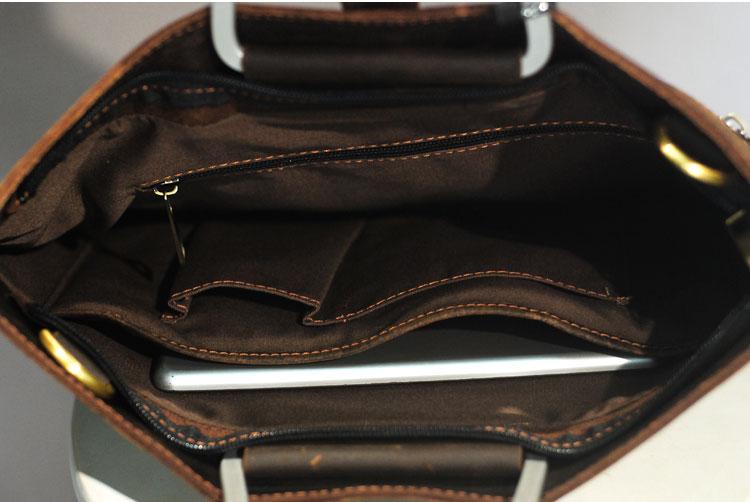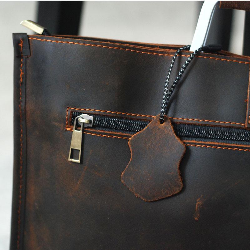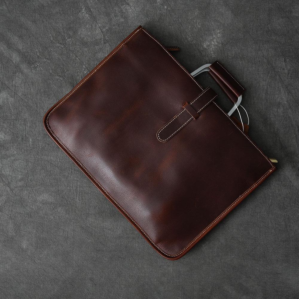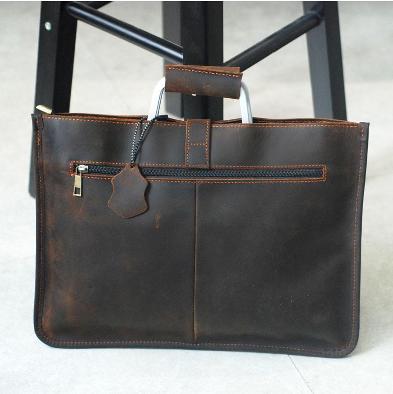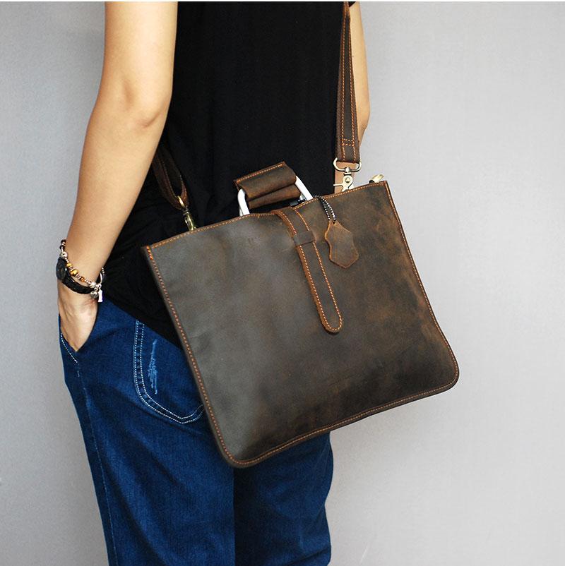 Design: Leather Mens Dark Brown Briefcase 13'' Laptop Bag Red Brown Messenger Bag Shoulder Bag For Men