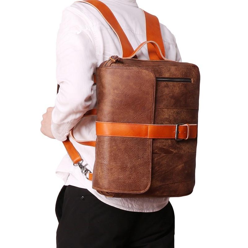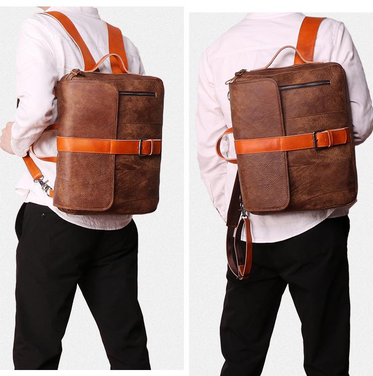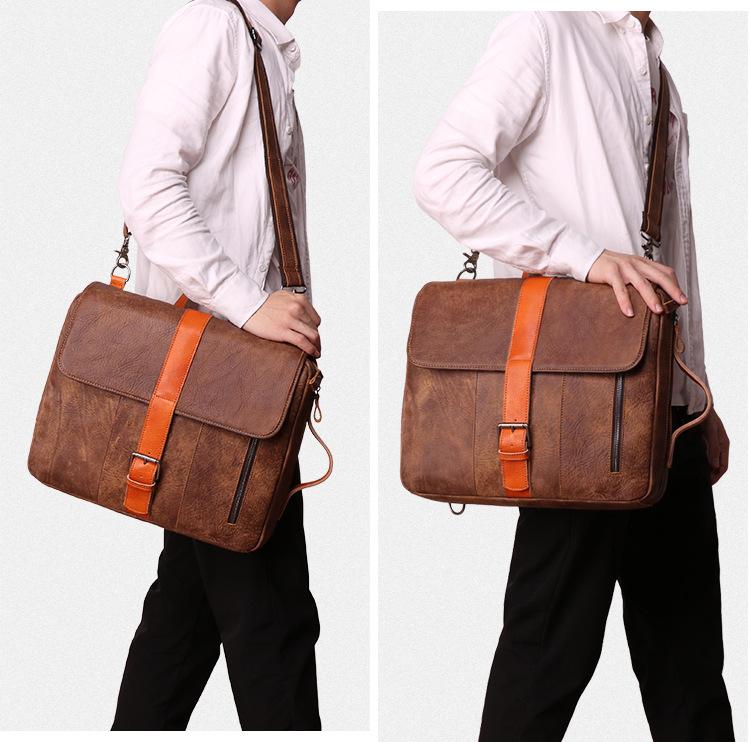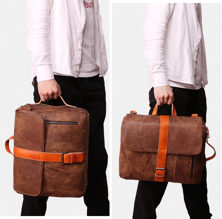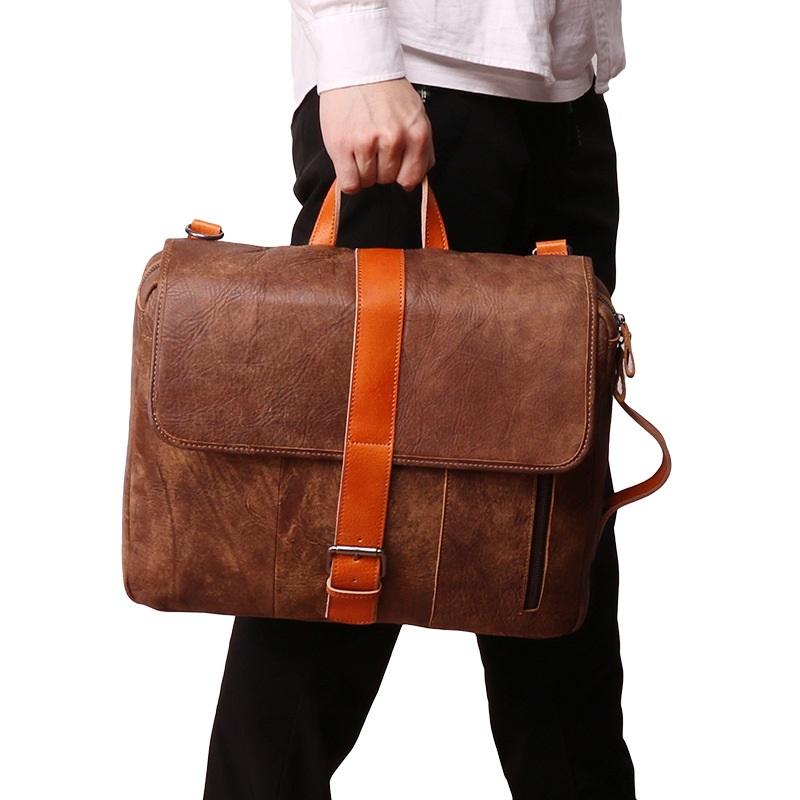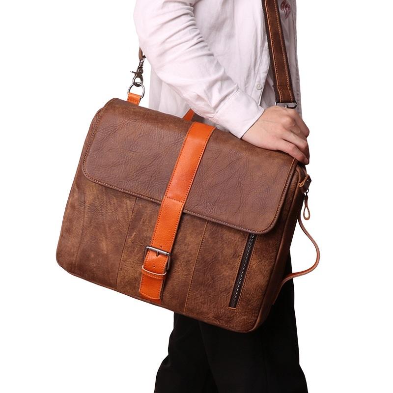 Design: Cool Brown Leather Men's Messenger Bag Handbag Backpack Briefcase For Men