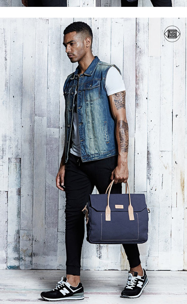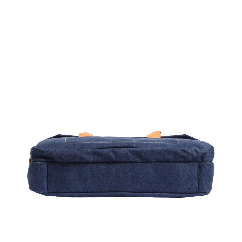 Navy Blue Canvas Leather Mens Briefcase Messenger Bags Khaki Casual Shoulder Bag for Men