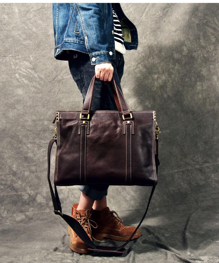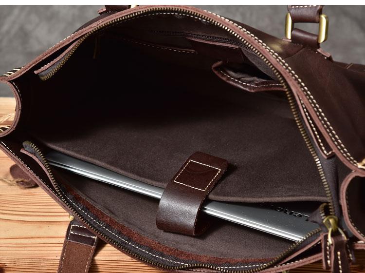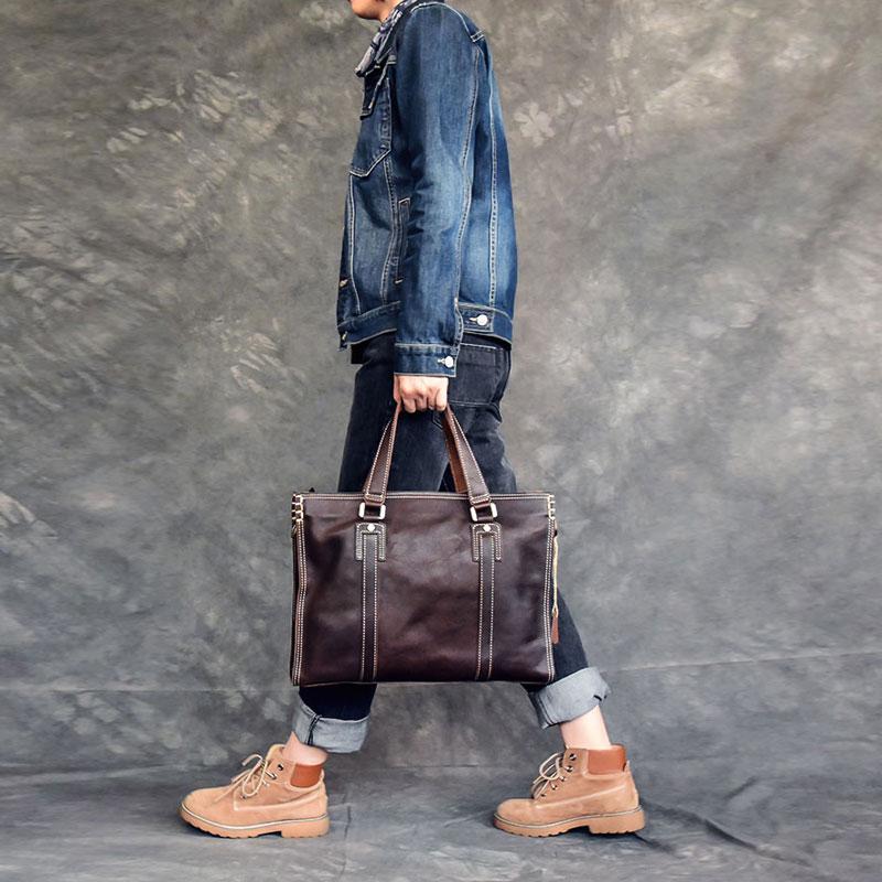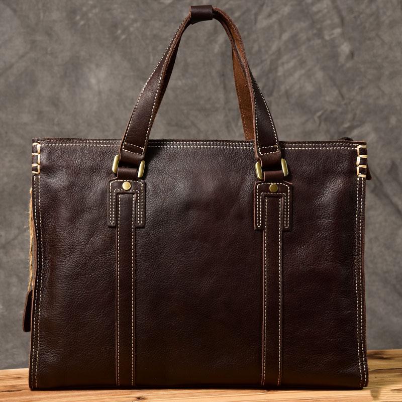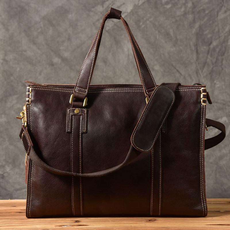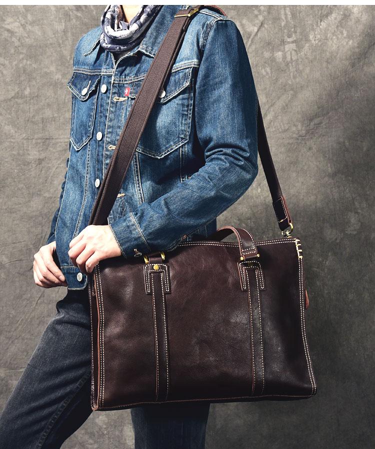 Design: Waxed Leather Mens 14" Dark Brown Laptop Briefcase Business Messenger Bag Brown Large Handbag For Men