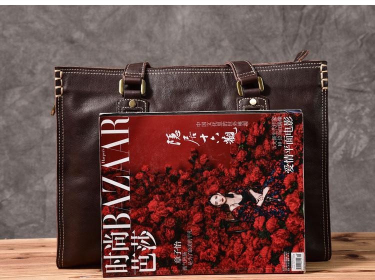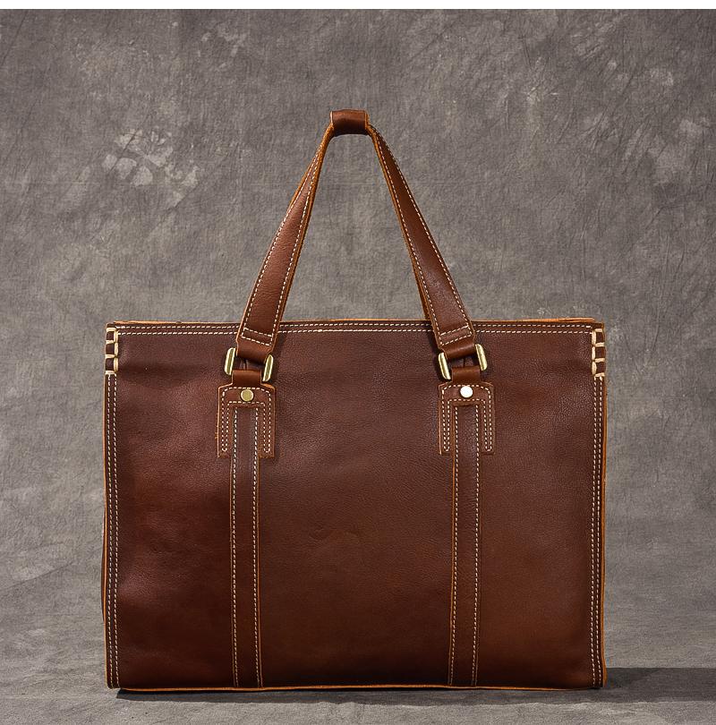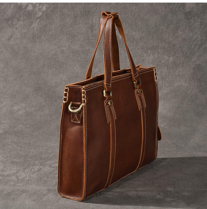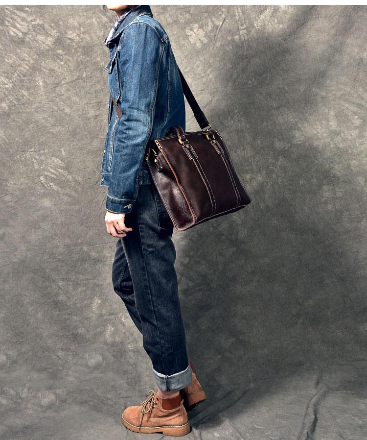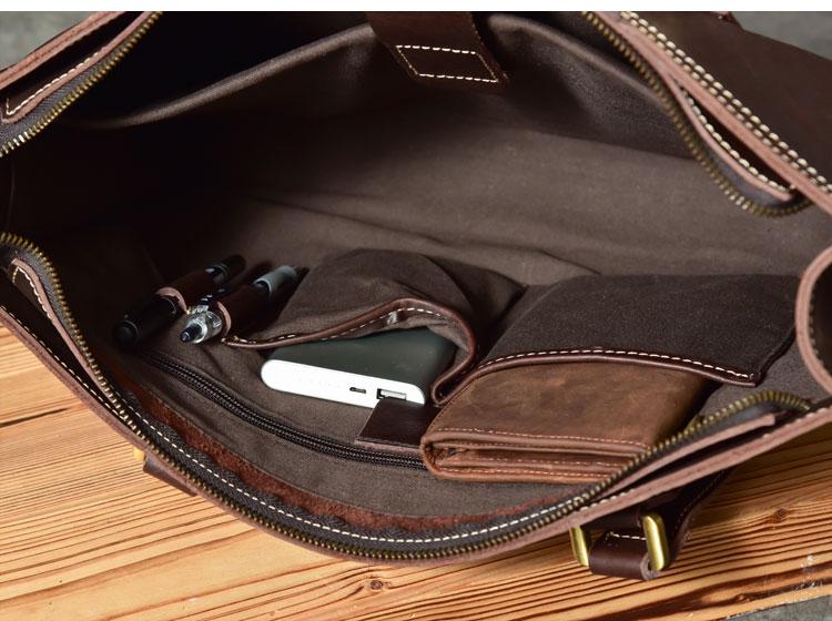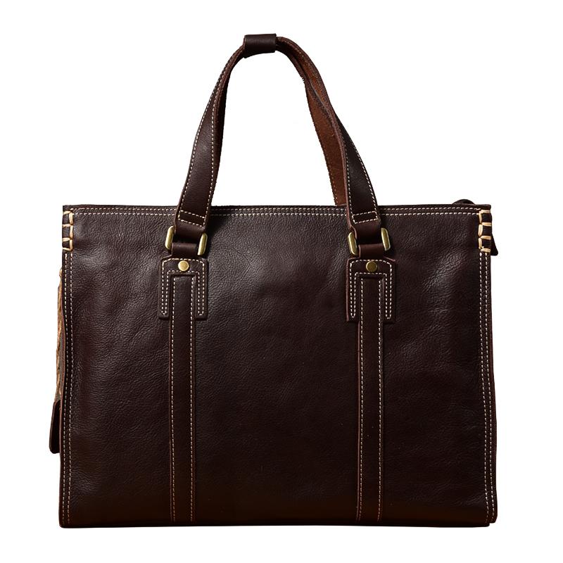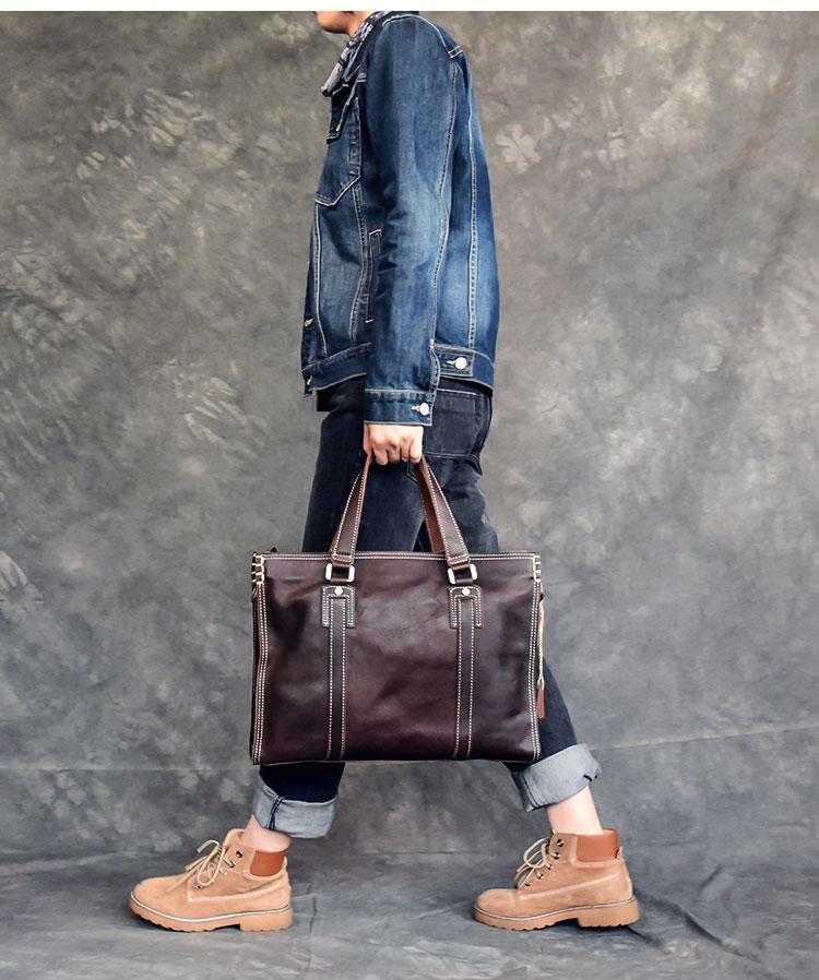 Design: Waxed Leather Mens 14" Dark Brown Laptop Briefcase Business Messenger Bag Brown Large Handbag For Men