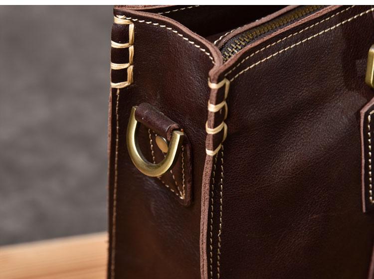 Style: Waxed Leather Mens 14" Dark Brown Laptop Briefcase Business Messenger Bag Brown Large Handbag For Men
